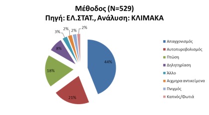 Η πιο συχνή μέθοδος αυτοκτονίας των αντρών ήταν ο απαγχονισμός ενώ για τις γυναίκες η πτώση από ύψος.