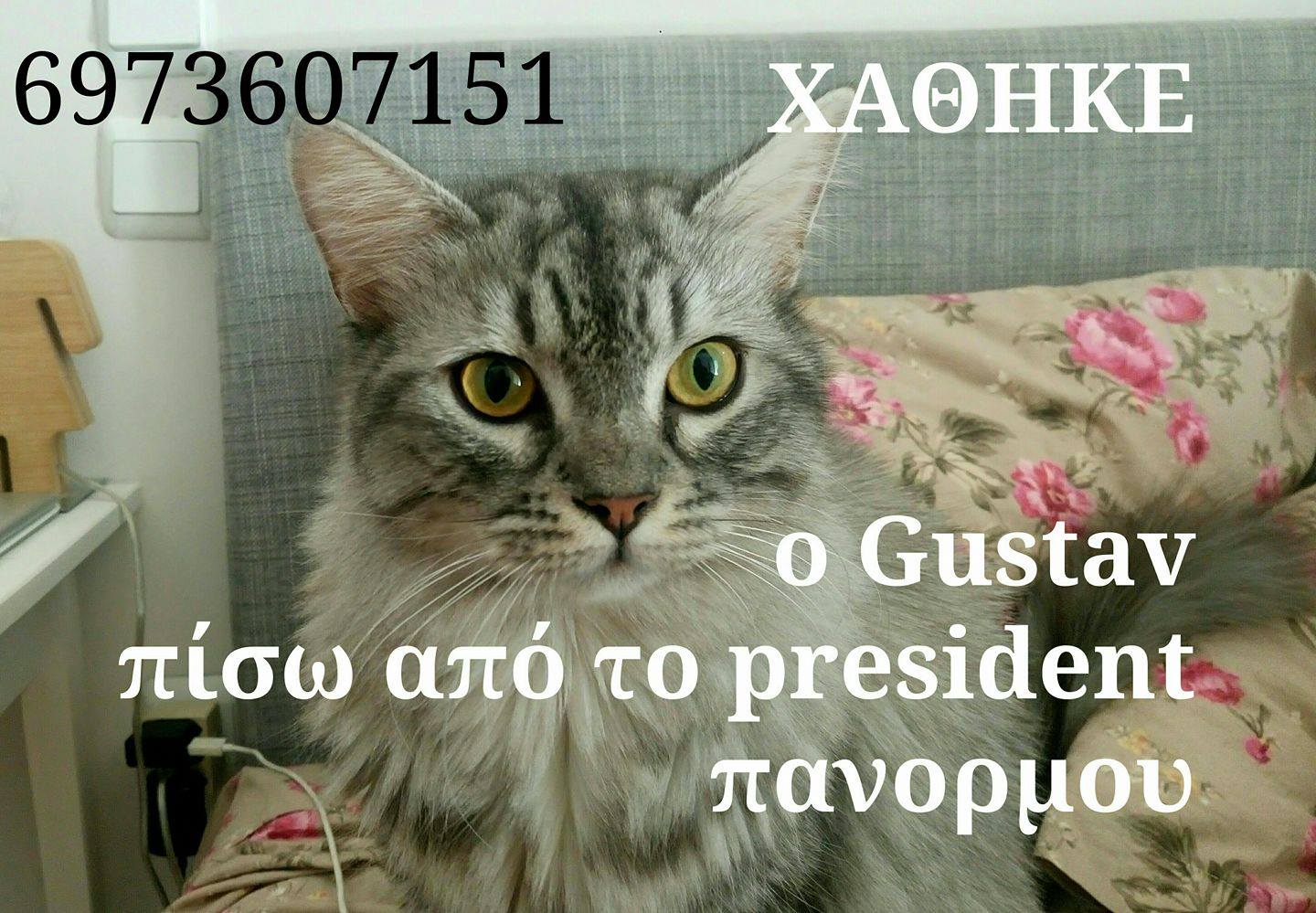 Ο Gustav είναι ένας αξιολάτρευτος γκρι γατούλης με πλούσιο τρίχωμα που χάθηκε την Τετάρτη 6 Σεπτεμβρίου από την περιοχή των Αμπελοκήπων-Πανόρμου, πίσω από το ξενοδοχείο President.