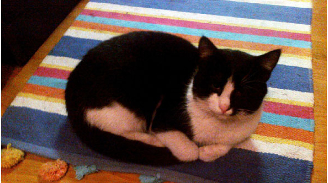 Ήταν μικρούλης πολύ -έμοιαζε για δύο τριών μηνών το πολύ. Δίχρωμος (άσπρο - μαύρο), πρασινομάτης, με ωραιότατη μακριά και σκερτσόζα ουρά. Μας υιοθέτησε πριν από έναν χρόνο. Ανέβηκε μια μέρα άφοβος τα σκαλιά, στριφογύρισε στα πόδια μας, αγνόησε τα ξου μας κι έκτοτε δεν έφυγε από το φτωχικό μας. Μέρα με τη μέρα κέρδιζε πόντους στο σπίτι και την καρδιά μας. Στην αρχή κατέλαβε το μπαλκόνι, μετά μπήκε στο χολ, ύστερα στο σαλόνι. Καναπέ ακόμα δεν πάτησε, και ούτε πρόκειται (αν και με τον τύπο πάψαμε να λέμε μεγάλα λόγια). Τον βαφτίσαμε Ευγένιο (από τον Τριβιζά), Ροβέρτο (από τον Σπυρόπουλο του ΙΚΑ, άσχετο, απλώς τον βλέπαμε στην τηλεόραση!) Μαυρούλη (για να γυρνάει και σε κανένα όνομα).