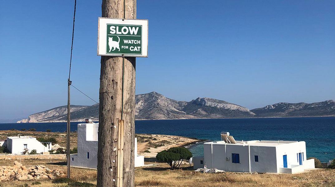 «Προσοχή, διέλευση γατών!» (πινακίδα στο Κουφονήσι)