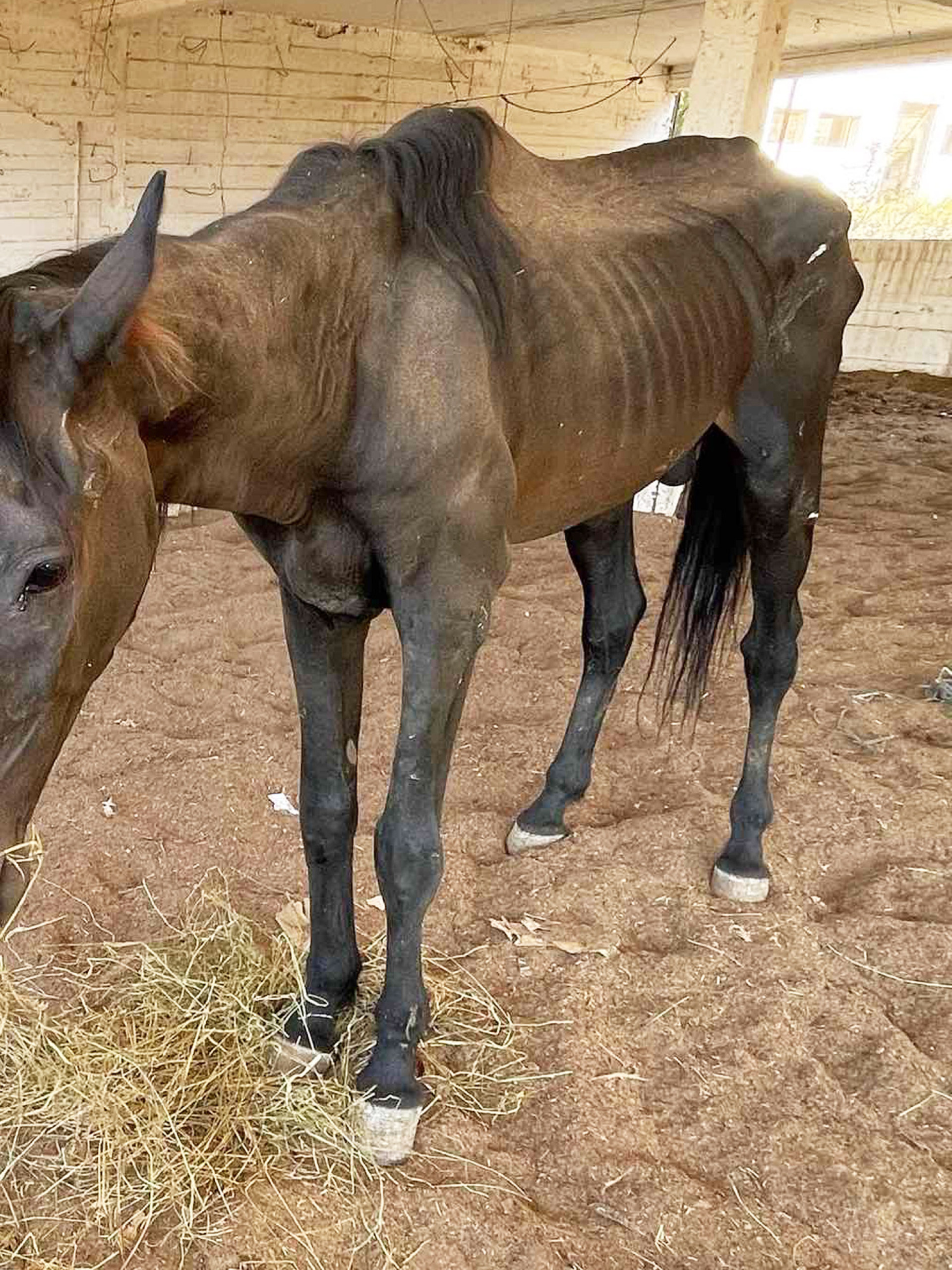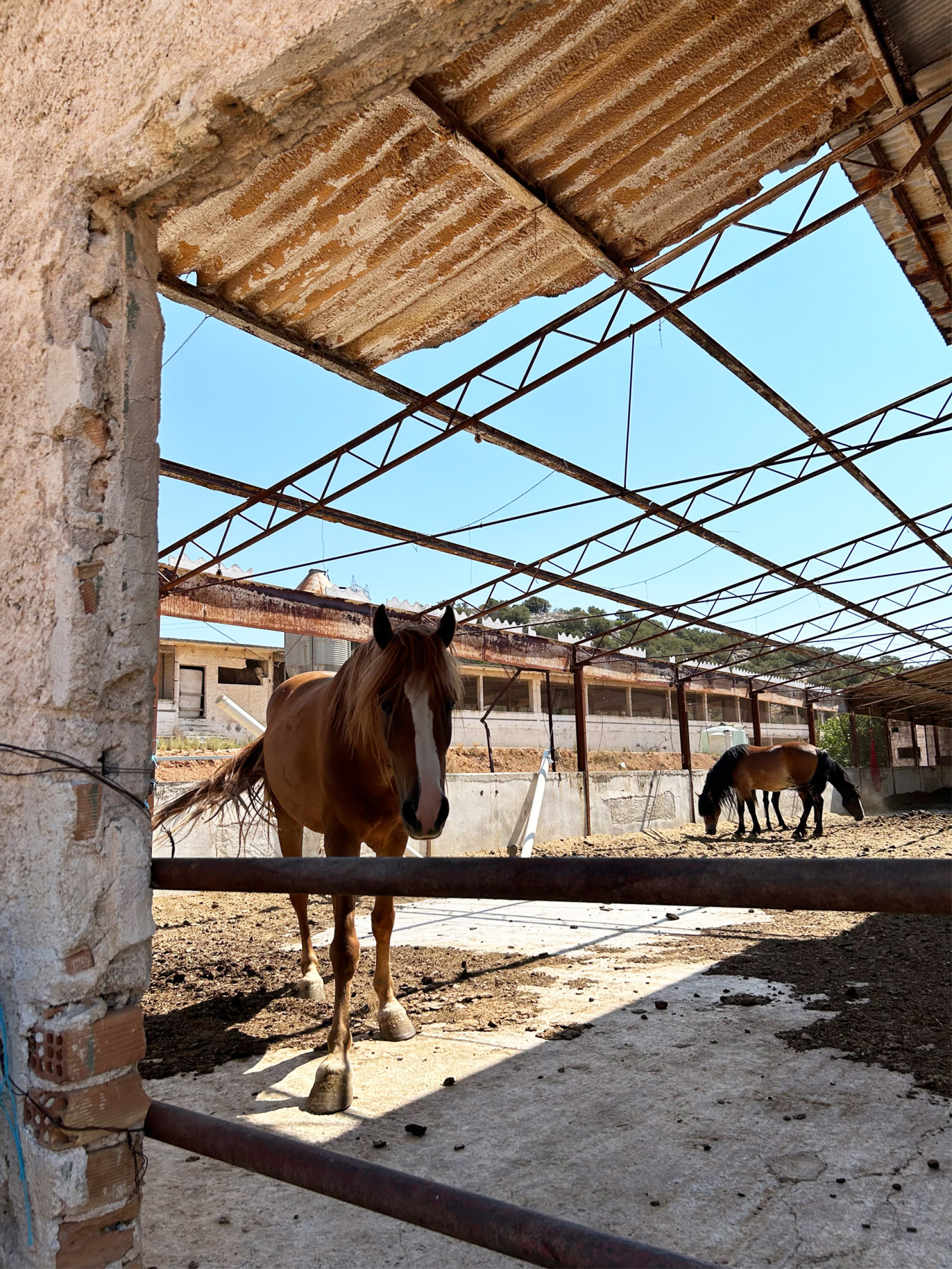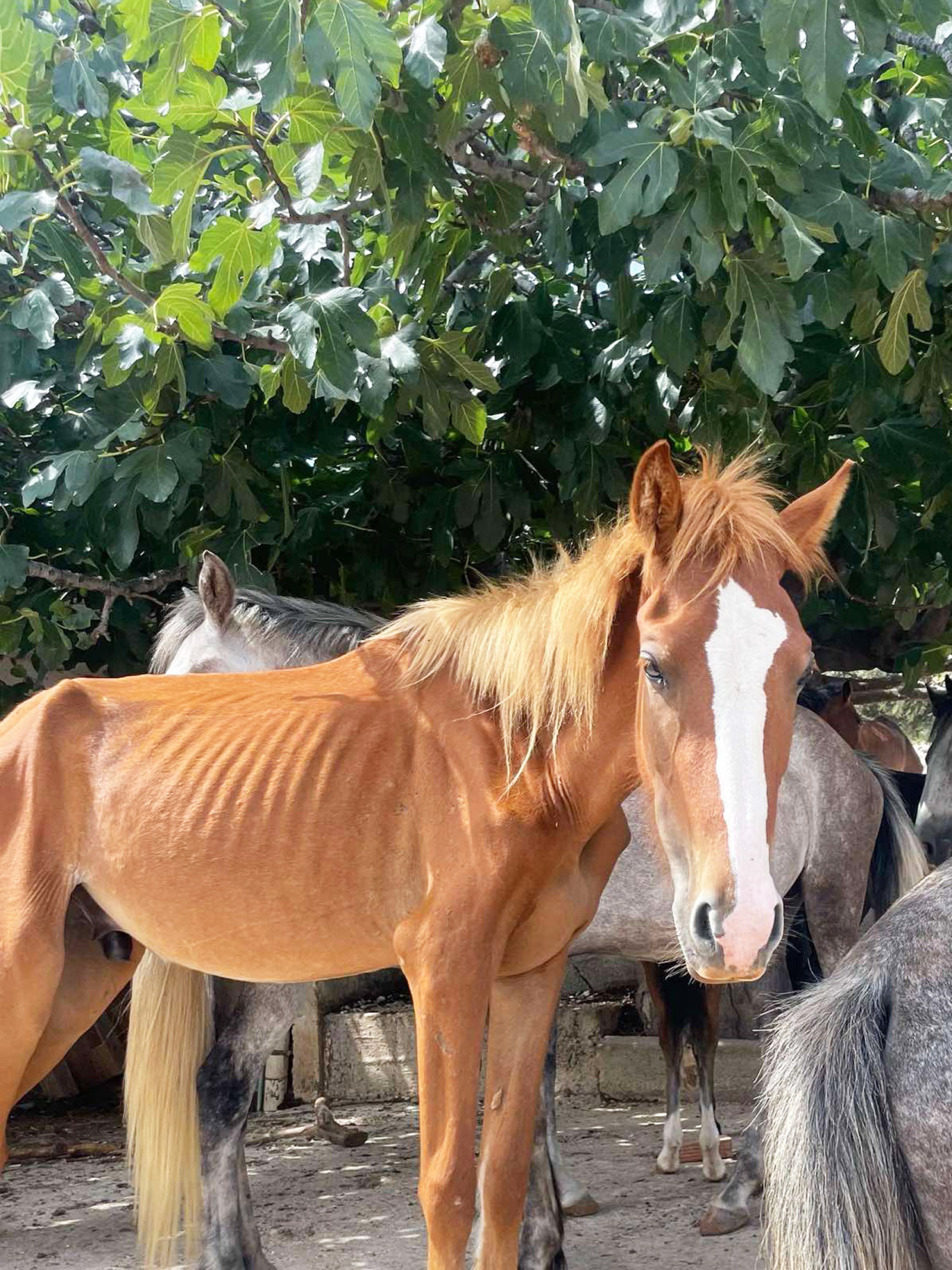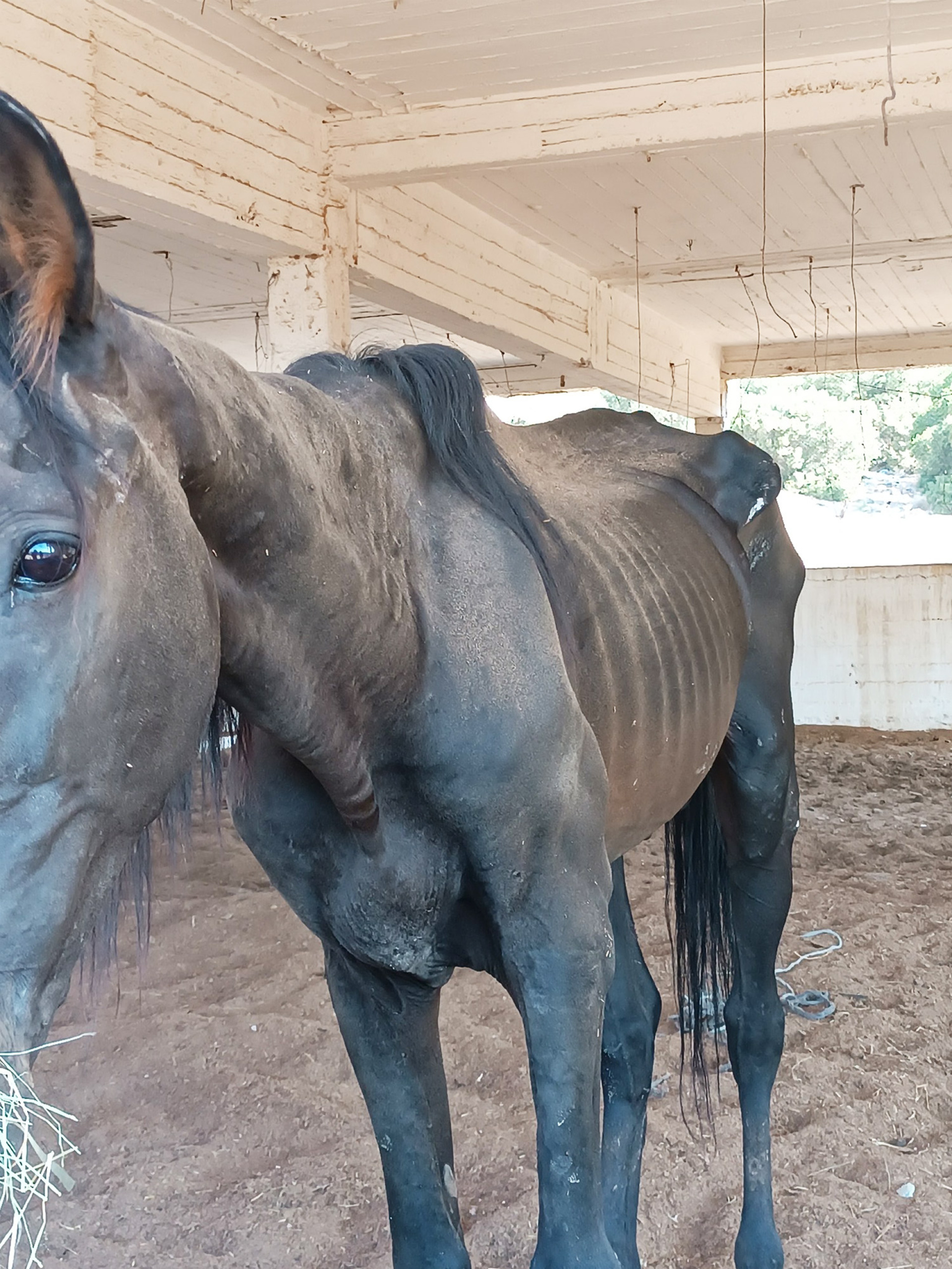 Ρωτάω πώς ξεκίνησε όλο αυτό. Όταν μετακόμισαν σε ένα σπίτι στην περιοχή εκεί κοντά, η Μαρία έβρισκε έξω από την πόρτα της κοπάδια αλόγων. Τους έβαζε νερό και δεν προλάβαινε να γεμίσει τους κουβάδες, τους έφερνε μπάλες από το άλογό της για να φάνε – από πού έρχονταν; Απευθύνθηκε στα φιλοζωικά σωματεία για τα ιπποειδή, μίλησε με κάτοικους… όλοι γνώριζαν! Της είπαν μια τρελή ιστορία. Ότι ήταν κάποιος που ζούσε εκεί κοντά στο βουνό. Πήγε περίπου το 2006 με 3-4 άλογα (φοράδες και επιβήτορες) και μέσα στα χρόνια έφτασαν τα… 100. Το θέαμα που αντίκρισε όταν την πήγαν στα παλιά ορνιθοτροφεία, μαζί με τις άλλες δύο κοπέλες τότε, ήταν τραγικό: πάρα πολλά άλογα που μάχονταν μεταξύ τους, υποσιτισμένα, χωρίς νερό, γεμάτα πληγές, εξαθλιωμένα. Ο «συλλέκτης» ζώων, ο οποίος ζούσε και ο ίδιος σε κακές συνθήκες, είχε καταπατήσει τον χώρο, ενώ ο εξοπλισμός και η περίφραξη είχαν λεηλατηθεί. Κάποια από τα άλογα ήταν εντός και εκτός της «οικίας» του και κάποια στα παλιά ορνιθοτροφεία.