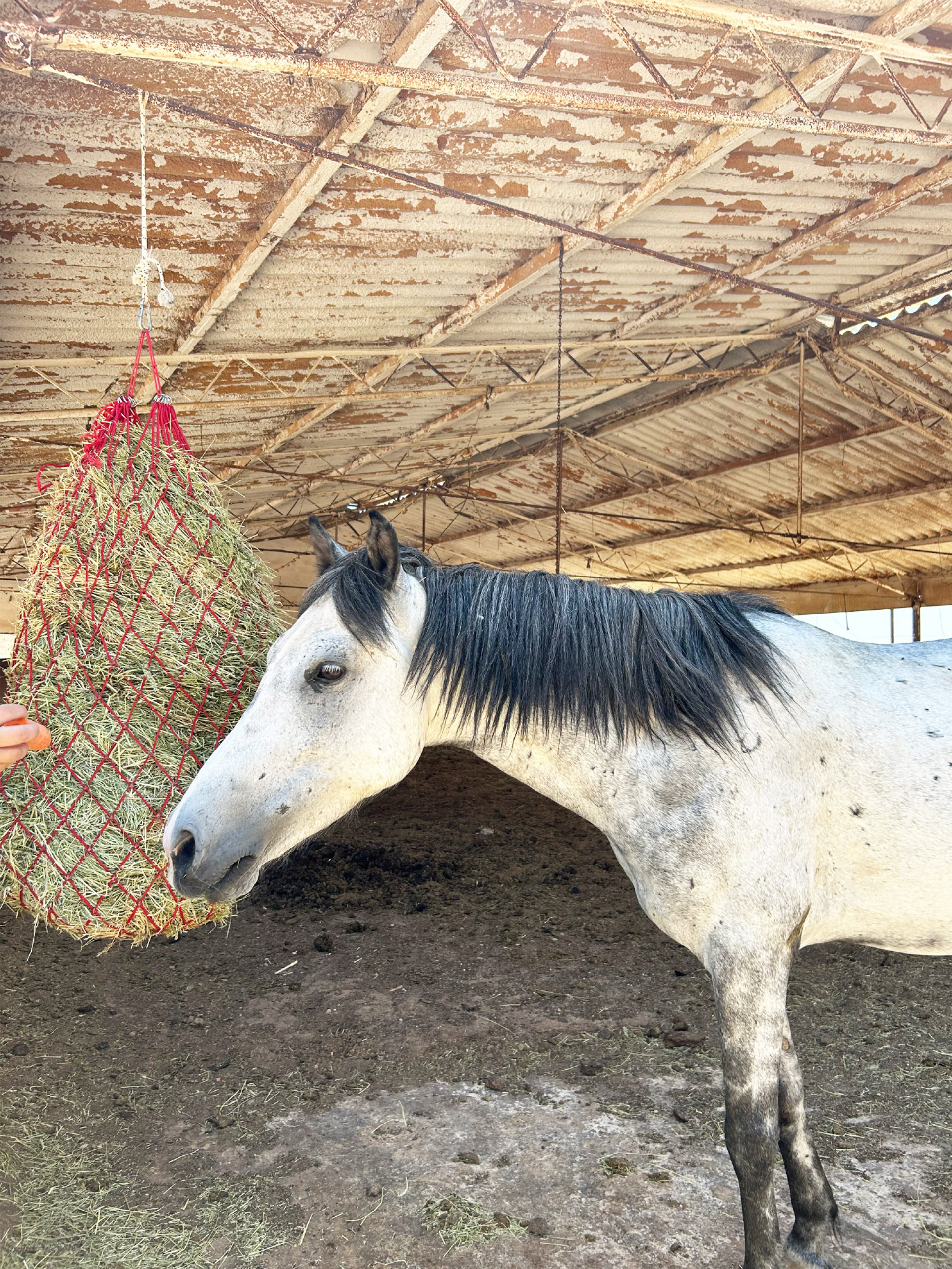 Ποιοι τα υιοθετούν; ρωτάω. «Συνήθως άνθρωποι που έχουν μεγάλα κτήματα και τα θέλουνε σαν ζώα συντροφιάς. Κανένα μέχρι στιγμής δεν έχει υιοθετηθεί για να ιππευτεί, όμως αν έχουμε το χρόνο και τους πόρους μπορούν να εκπαιδευτούν και δοθούν σε καλά χέρια και να ιππευθούν μελλοντικά – τα ενήλικα πάνω από 8-9 χρονών δεν εκπαιδεύονται τόσο εύκολα. Ωστόσο, αν εκπαιδευτούν δεν είναι κακό να τα ιππεύσει κάποιος που ξέρει, με σεβασμό πάντα, και επίσης πρέπει οπωσδήποτε να έχουν μάθουν το καπίστρι και να κάνουν εξονυχισμό, θα έρθει η ώρα να πρέπει να τους κάνεις μία ένεση ή μια θεραπεία, ή της οπλές, σαν ένα σκυλί που πρέπει να έχει μάθει με λουρί για να μπορείς να το πας στο κτηνίατρο».