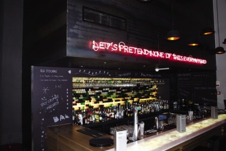 Partners Le Bar Νεοϋορκέζικη άφιξη στο Ψυχικό. Μεγάλος κατάλογος cocktails, τραγανή πίτσα σε πολλές γεύσεις και πικάντικα ποπ κορν. Βιομηχανική διακόσμηση με μεταλλικές μαύρες επιφάνειες και μαρμάρινα πάσα. Τrademark του μαγαζιού το φωτιζόμενο φούξια μήνυμα του μπαρ. Περικλέους 7, Νέο Ψυχικό, 210 6716.803, καθημερινά μετά τις 19.00
