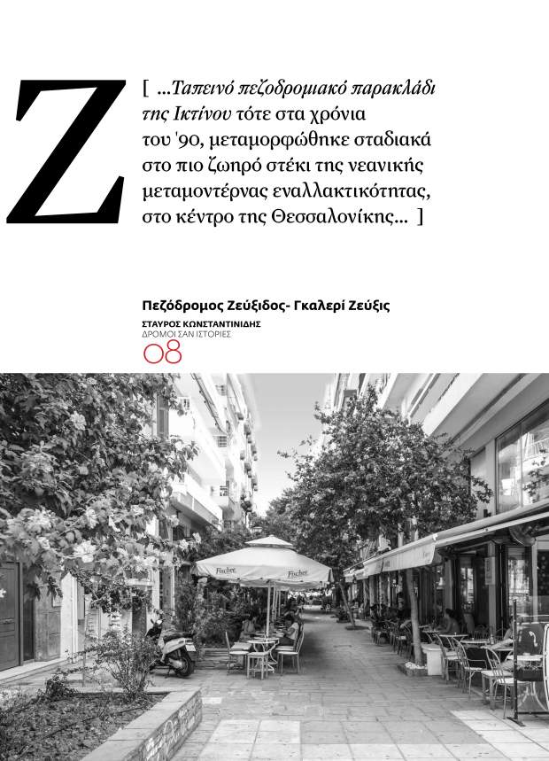 Κείμενα και φωτογραφίες δέκα εμβληματικών δρόμων της Θεσσαλονίκης, από τον συγκοινωνιολόγο Σταύρο Κωνσταντινίδη. Στοχαστικοί περίπατοι μέσα στη ρυμοτομία και στο χρόνο, σε μια έκθεση - road movie που εξωτερικεύει όσα κρύβονται κάτω από το δέρμα της πόλης. Πηγή έμπνευσης εδώ είναι το αστικό γκρι, το φως του ήλιου, το νερό της βροχής, οι αντανακλάσεις του χρωμίου, οι μετατοπίσεις της πυξίδας από το κέντρο προς τα ανατολικά και δυτικά, οι βηματισμοί σε ραγισμένα πεζοδρόμια που αγαπήσαμε. Μια εξαιρετική έκθεση της Θεσσαλονίκης από έναν πολύτιμο γνώστη της. Ο Σταύρος Κωνσταντινίδης μας μίλησε για την πόλη, την κουλτούρα της, τη θέση της στο παρόν και στο μέλλον, καθώς και την επιμονή του σε αυτό που ονομάζει «πολιτισμό της καθημερινότητας».