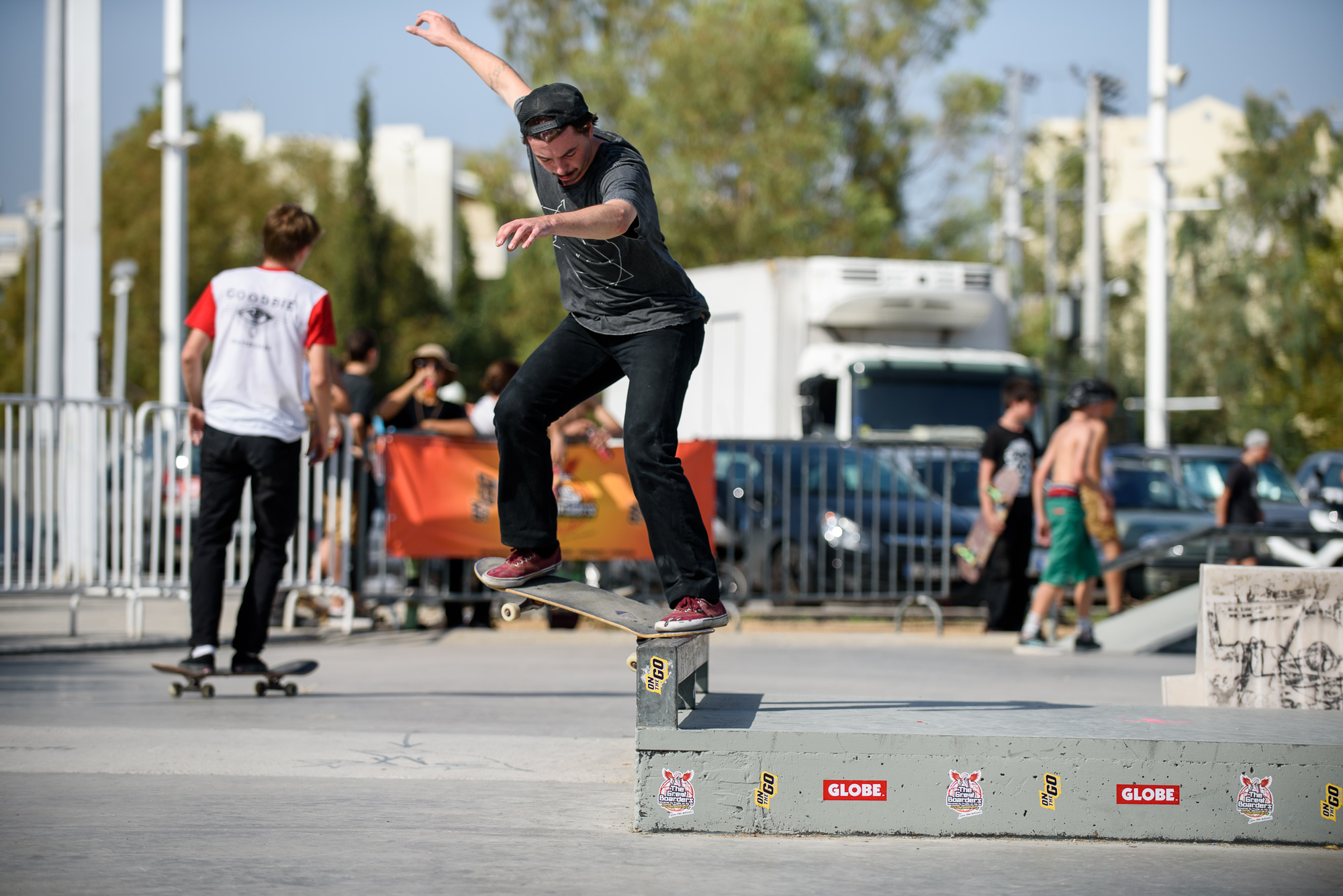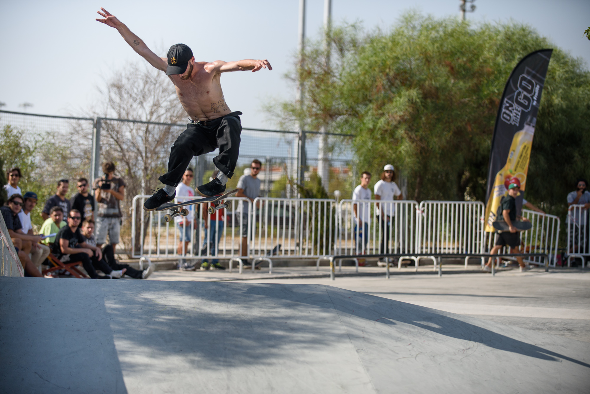 Το location ήταν το ΟΑΚΑ skate plaza. Από τις πρώτες πρωινές ώρες το σημείο γέμισε από skaters που έκαναν practice τα κόλπα τους κάτω από τον καυτό ήλιο του Σεπτέμβρη. Triple or nothing, λοιπόν, που σημάνει τρεις διαφορετικοί διαγωνισμοί σε τρία διαφορετικά spot του πάρκου, με αποτέλεσμα 3 νικητές σε κάθε διαγωνισμό – καθόλου άσχημα!
