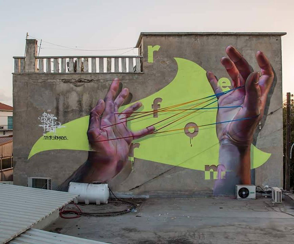 Τα τελευταία χρόνια η Κύπρος έχει γίνει ένα από τα πιο hot spots ως προορισμός για έναν ταξιδιώτη – φυσάει φρέσκος αέρας, δεν θέλει και πολύ για να σε μαγνητίσει το συγκεκριμένο μέρος. Έτσι κι εμείς, για δεύτερη χρονιά, βρεθήκαμε με κέφι στην Πάφο για το «street art square». Τα πράγματα φέτος έδειχναν πολύ πιο οργανωμένα και γενικά η κατάσταση είναι πολύ καλύτερη σε σχέση με το πώς τα πάμε εμείς οι Έλληνες. Όταν ακούς ότι ο προηγούμενος δήμαρχος γνώριζε καλά την τεχνική του πενταδάκτυλου με αποτέλεσμα να βρεθεί εκεί που του αξίζει, νομίζω ότι αυτό λέει πολλά.
