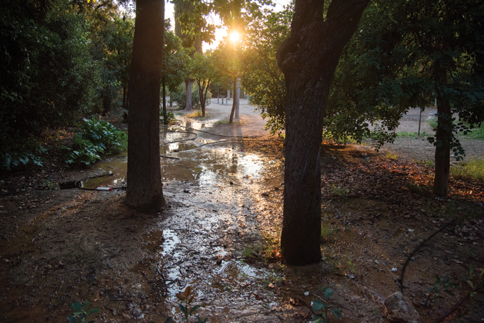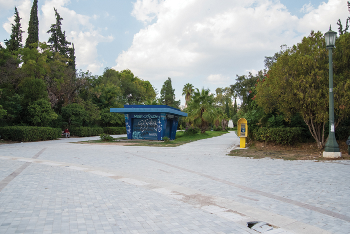 Οι περισσότερες λάμπες στο πάρκο δε λειτουργούν. Είτε γιατί κάηκαν και κανείς δεν τις άλλαξε, είτε γιατί κάποιοι τις σπάνε επίτηδες. Το αυτόματο πότισμα σε κάποια σημεία έχει σπάσει και το νερό τρέχει από δω κι από εκεί, μέχρι να το δει κάποιος και να πάρει την ΕΥΔΑΠ. Ο περίφημος Ροδώνας όταν ολοκληρώθηκε η ανάπλαση του πάρκου είχε ένα μικρό ποταμάκι με νερό που έτρεχε, κρεμαστά λουλούδια και τριανταφυλλιές και παγκάκια τριγύρω. Για να κάθονται οι Αθηναίοι και να το απολαμβάνουν. Τώρα δεν έχουν μείνει ούτε τα παγκάκια. «Όλα αυτά χρειάζονται συντήρηση αλλά συντήρηση δεν υπάρχει, ήδη από το 2011. Μόνο με το πράσινο κάτι έχει γίνει. Έχουν φυτέψει μερικά δεντράκια, έχουν κλαδέψει κι έχουν καθαρίσει τα χόρτα. Πέρυσι ήταν ζούγκλα εδώ μέσα» λέει η κ. Αντωνιάδου.