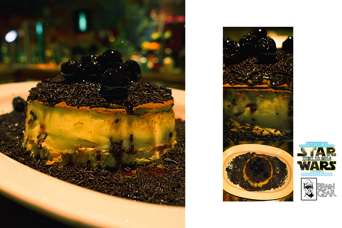Το μενού περιλαμβάνει ευφάνταστους τίτλους όπως Chewbacca Burger , Tie Fighter Pasta (μακαρονοσαλάτα), Endorian Chicken Pie.