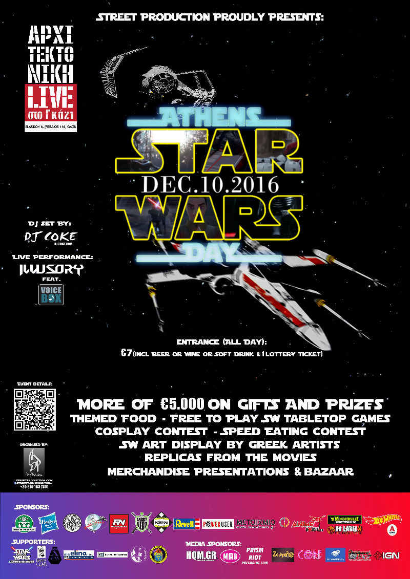 Έκθεση θεματικών έργων του Star Wars από Έλληνες comic artists, illustrators και ζωγράφους όπως: Αχιλλέας Κοκκινάκης, Βασίλης Λώλος, Βασίλης Γκοτζιλάς, Ηλίας Χατζούδης, Norjin, Ελεάννα Μαυροφρύδη, DaNi, Κυριάκος DarkSide, Steve Agoto, Hellustrations by ntok, Νίκος Παπαμιχαήλ, meliss, Παναγιώτης Τσαούσης, Χρήστος Μακροζαχόπουλος, Χρήστος Κατρούτσος Άγγελος Παπουτσής, Δημήτρης Λαγός, Νίκος Παπαμιχαήλ.