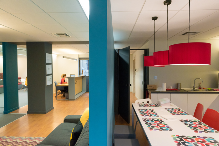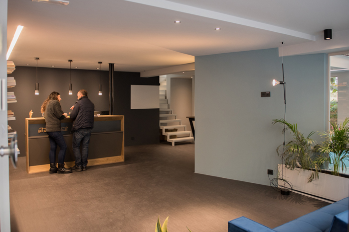 Στην αρχή τα γραφεία καταλάμβαναν τον 2ο και τον 3ο όροφο, που σχεδιάστηκαν από την Μαρία Δόξα και την Μαρίνα Στασινοπούλου τον Φεβρουάριο-Ιούλιο του 2012. Αργότερα ακολούθησαν ο 1ος όροφος και το ισόγειο που μόλις ολοκληρώθηκαν, από τους HIBOUX Architecture. Το κτίριο εξωτερικά απέκτησε χαρακτήρα με ένα installation που κυριαρχεί στην είσοδο, ένα μεγάλο ταμπλό με μετακινούμενες ξύλινες ψηφίδες: με αυτές μπορεί κανείς, όποιος θέλει, να σχηματίσει γράμματα και φράσεις που αλλάζουν ανάλογα με τη διάθεση ή την επικαιρότητα – από Merry Christmas μέχρι ένα καλωσόρισμα σε ένα νέο συνάδελφο κ.λπ.