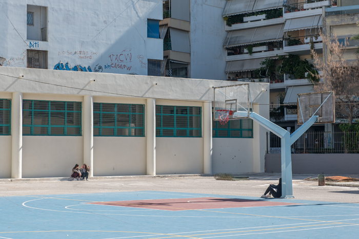 Ενθυμούμενος αυτά, έπεσε το μάτι μου στα απλωμένα ρούχα στο μικρό μπαλκόνι ενός ισόγειου διαμερίσματος στην οδό Νικοπόλεως, τρία τέσσερα στενά από την Κολιάτσου. Το μπαλκόνι ήτανε τόσο μικρό που δεν χωρούσε απλώστρα και κάτι παιδικά παντελονάκια περίμεναν όρθια να στεγνώσουν, στηριγμένα σε μια εμπνευσμένη κατασκευή. Ο μαθητικός πληθυσμός του σχολικού συγκροτήματος «Μιχαήλ Νομικός», στη Νικοπόλεως 33, εκεί όπου στεγάζεται και το 8ο Γυμνάσιο, είναι παρόμοιος με τον πληθυσμό της περιοχής. «Στο γυμνάσιο φοιτούν 240 παιδιά και περισσότερο από το 80% είναι μετανάστες δεύτερης γενιάς, όπως συμβαίνει σε όλα τα σχολεία του κέντρου της Αθήνας. Κατά κύριο λόγο προέρχονται από τα Βαλκάνια και λιγότερο από χώρες εκτός Ευρώπης» λέει η Δήμητρα Παπαζαφειράτου, φιλόλογος και διευθύντρια του σχολείου.