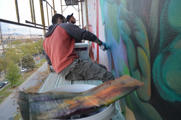 Το mural σε επιφάνεια 500 τετραγωνικών μέτρων υλοποιείται έπειτα από πρωτοβουλία του Συλλόγου Νεφροπαθών Θεσσαλονίκης και επιμέλεια-υλοποίηση της ομάδας UrbanAct, ενώ τιτλοφορείται «Ζήσε δύο φορές»: Ζήσε δυνατά – δώρισε περήφανα. Θεματική της δημόσιας τοιχογραφίας είναι η δωρεά ιστών και οργάνων, ενώ το oυρανομήκες έργο υλοποιούν οι δύο δημιουργοί στην πίσω είσοδο του νοσοκομείου επί της Αγίου Δημητρίου. Χρειαζόμαστε περισσότερα τέτοια οπτικά ποιήματα στον αστικό καμβά. Τα τσιμέντα ανθούν και οι δρόμοι μοσχοβολάνε όπου επεμβαίνουν οι αρτίστες της street art.
