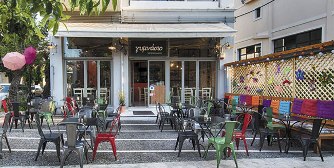 Ένας τεράστιος μαυροπίνακας γεμίζει με στιχάκια και αφιερώσεις, ένας άβακας μετράει τις όμορφες στιγμές και οι χρωματιστές καρέκλες στο… προαύλιο σε καλούν κοντά τους να γιορτάσεις την άνοιξη. Το Γυμνάσιο θα σου θυμίσει τα μαθητικά σου χρόνια και το πόσο ξέγνοιαστη μπορεί να γίνει η ζωή. Θα σου διδάξει όμως και μερικά γευστικά μαθήματα που θα θες να παρακολουθείς ξανά και ξανά! Έλα για κανταϊφάκια με γέμιση τυριού και λιαστής ντομάτας (συνοδεύονται από μαρμελάδα ντομάτας), για μαστιχάτο κοτόπουλο μπουκίτσες, για υπέροχα τσιγαριαστά χόρτα με ψητό ταλαγάνι και σαλάμι Λευκάδος, για μπιφτεκάκια κοτόπουλου με σος φέτας και για τόσα άλλα μικρά πεντανόστιμα μυστικά. Τις Κυριακές τα μεσημέρια που έχει live με έντεχνα και λαϊκά τραγούδια (16.00-21.00) τσούγκρισε με κρασί, τσίπουρο, ρακόμελο ή οινόμελο και πιάσε τον σκοπό. Extra tip: Η σοκολατόπιτα με gin tonic και παγωτό είναι σκέτο ποίημα! Ν. Τρύπια 80, 210 2532708, Fb: Gymnasio mezedopolio