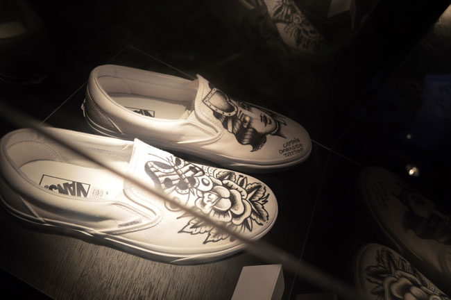 Φέτος η Vans παρουσίασε ένα ιδιαίτερο dark room για να τιμήσει το ink art. Στο Vans Ink Art Dark Room οι επισκέπτες είχαν τη δυνατότητα να δουν από κοντά customized Vans παπούτσια, τα οποία γνωστοί tattoo artists είχαν μετατρέψει σε έργα τέχνης. Για το project επελέγησαν κλασικά μοντέλα Vans, όπως το Slip On, το Authentic και το Old Skool σε λευκό χρώμα, με τους καλλιτέχνες Nikolas, Panagiotis, Otheser, Tam, Live2, Salir, Habs, Mr French, Captain & Kiriakos πραγματικά να δίνουν τον καλύτερό τους εαυτό δημιουργώντας μοναδικά σχέδια!.