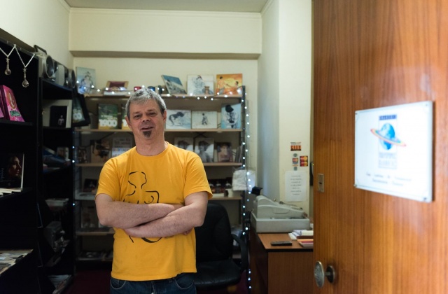Ο «Πολύχρωμος Πλανήτης» άνοιξε τις πόρτες του το 2004, μας λέει ο Θανάσης Βέσσης, υπάλληλος του βιβλιοπωλείου.