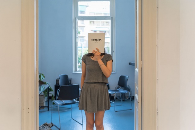 Αφετηρία μας ο ανεξάρτητος χώρος τέχνης Grace Athens, στην οδό Φιλαδελφείας 2, λίγα μόλις μέτρα από τον Σταθμό Λαρίσης, στον οποίο αυτή τη στιγμή φιλοξενείται η έκθεση του fanzine της εικαστικού Αμαλίας Βεκρή, Asthenia. Μονάχα μία κόλλα A4 με το λογότυπο της αυτοέκδοσης προδίδει πως κάτι συμβαίνει μέσα στο κτίριο με τη μπεζ πρόσοψη, που βρίσκεται δίπλα σε ένα κατάστημα με ηλεκτρικά μηχανήματα καθαρισμού. Το ψηλοτάβανο κτίριο που στεγάζει τώρα το Grace Athens, ήταν κάποτε ξενοδοχείο και όπως προδίδουν τα διαβρωμένα σκαλοπάτια του, υπήρξε κατάλυμα για τη σύντομη παραμονή των ταξιδιωτών που αποβιβάζονταν στον Σταθμό Λαρίσης. Στην έκθεση που θα διαρκέσει μέχρι και τις 8 Ιουνίου, συμμετέχει μία πλειάδα Ελλήνων καλλιτεχνών με μια σειρά από πρωτοποριακά και ιδιαίτερα έργα.