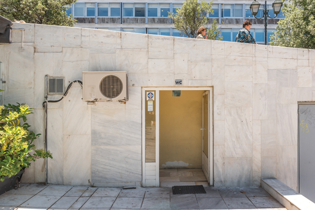Στον Διόνυσο, στη Ροβέρτου Γκάλι, βρίσκονται οι δημόσιες τουαλέτες που εξυπηρετούν τον περισσότερο κόσμο. Περίπου 2.000 άτομα την ημέρα, στη μεγάλη τους πλειονότητα τουρίστες. Τα πούλμαν παρκάρουν απ’ έξω, ποιος ξέρει πόσες ώρες ταξίδευαν, κι ο κόσμος μπαινοβγαίνει ασταμάτητα. Η τουαλέτα εδώ έχει τέσσερις καμπίνες για τις γυναίκες, τέσσερις για τους άνδρες και τρεις ουρητήρες, καθώς και τουαλέτα που εξυπηρετεί Άτομα με Ειδικές Ανάγκες (ΑμΕΑ). Στου Μακρυγιάννη, απέναντι ακριβώς από την ουρά που σχηματίζουν οι τουρίστες για να επισκεφθούν την Ακρόπολη, από την κάτω της είσοδο, η ταμπέλα WC κάτω από τον ίσκιο δείχνει τον υπόγειο δρόμο της ανακούφισης. Και στη Βαρβάκειο, από την πλευρά που είναι οι πάγκοι με τα λαχανικά, βρίσκεται η αρχαιότερη δημόσια τουαλέτα, μαζί με αυτή στου Ψυρρή. Στη Βαρβάκειο, μια φορά που ο υπάλληλος χρειάστηκε να λείψει για ένα τέταρτο βουτήξανε τις βρύσες.
