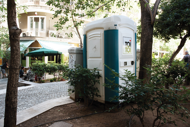 Στην Ακαδημίας, στην εκκλησία της Ζωοδόχου Πηγής, υπάρχει μία από αυτές, όμως ένας μαγαζάτορας από δίπλα λέει ότι δεν την προτιμάει κανείς, «πάνε όλοι πίσω στο μικρό στενάκι της Γ. Γενναδίου». Πάντως, ανοίγοντας εκείνο το μεσημέρι την πόρτα διαπίστωσα ότι κάποιος την είχε προτιμήσει. Την ίδια χημική τουαλέτα έτυχε να επισκεφθώ και κατά τη μία μετά τα μεσάνυχτα. Δεν είχε περάσει κάποιος να καθαρίσει, αλλά τουλάχιστον υπήρχε χαρτί. Φαίνεται πως οι χημικές τουαλέτες απευθύνονται σε ευπαθείς ομάδες πληθυσμού, κρίνοντας από τα σημεία όπου έχουν τοποθετηθεί. Στην Ομόνοια, στη Σατωβριάνδου, στην πλατεία Λαυρίου ή στη συμβολή της Πειραιώς με τη Σοφοκλέους, δίπλα από το συσσίτιο αστέγων. Απευθύνονται, επίσης, στις αυτοσχέδιες πιάτσες ταξί.