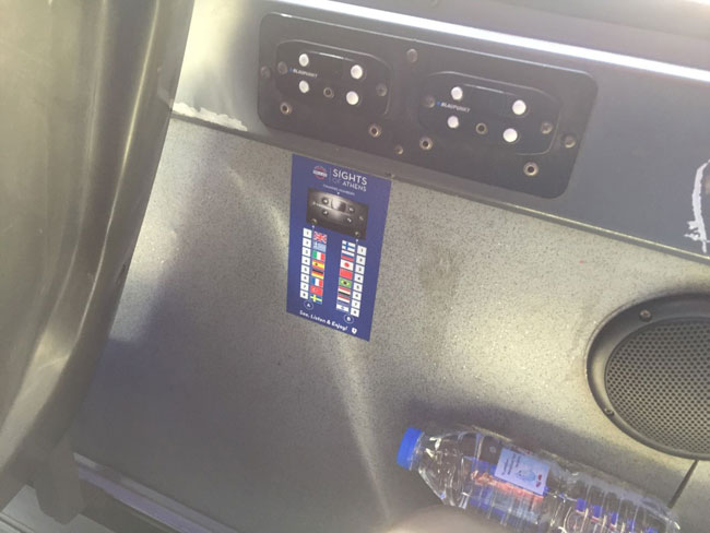 Η διαδρομή που επιλέξαμε ήταν ένας κύκλος στο κέντρο της Αθήνας. Μπορεί εμείς να μπήκαμε στο Σύνταγμα, αλλά κάποιος ανεβαίνει ή κατεβαίνει σε όποια στάση επιθυμεί, πληρώνοντας βέβαια το αντίστοιχο αντίτιμο. Σε όλους τους επιβάτες μοιράζονται ακουστικά, έτσι ώστε από τις ειδικές υποδοχές να έχεις μία ικανοποιητική και αντιπροσωπευτική ξενάγηση, η οποία διατίθεται μέσα από κανάλια 16 συνολικά γλωσσών!