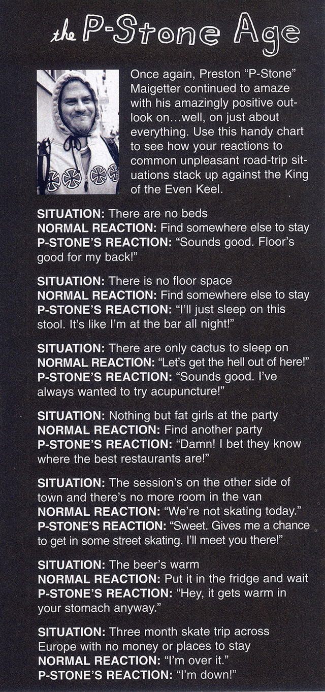 Πριν λίγες μέρες η παγκόσμια skateboarding σκηνή έχασε μια σημαντική προσωπικότητα και ψυχή που δεν συναντάς καθημερινά στο δρόμο σου. Ο P-Stone (Preston Maigetter) δυστυχώς μας άφησε νωρίς εξ' αιτίας ενός αυτοκινητιστικού δυστυχήματος. Στο αυτοκίνητο μαζί του ήταν ακόμα 2 φίλοι. Ο οδηγός που επίσης τυγχάνει να είναι μεγάλο όνομα στην παγκόσμια σκηνή του skateboarding και για κακή του τύχη έχασε τον έλεγχο σε στροφή, καθώς επίσης άλλος ένας επιβάτης αδιευκρίνιστων στοιχείων, ο οποίος είναι εκτός κινδύνου. Μέχρι σήμερα δεν έχουν απαγγελθεί κατηγορίες στον οδηγό, ο οποίος την Τρίτη 5/9 θα παρουσιαστεί ενώπιον του δικαστηρίου για να εξεταστεί η περίπτωση.