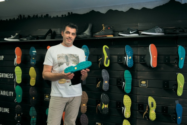 Σκουφά 10. Πρωί. Βιαστικές κυρίες, νεαρές αλλά και λίγο μεγαλύτερες, κατεβαίνουν τα σκαλιά ενός καταστήματος. Είναι το τσαγκαράδικο Τακούνι Star, που εδρεύει στο Κολωνάκι τα τελευταία 13 χρόνια. Τσάντες με παπούτσια αλλάζουν χέρια. Στη χροιά της φωνής των πελατών που πάνε να παραδώσουν κάτι για επιδιόρθωση διακρίνει κανείς την αγωνία για το αποτέλεσμα, στο πρόσωπο όσων παραλαμβάνουν τα φτιαγμένα παπούτσια σχηματίζεται ένα πλατύ χαμόγελο. Μπροστά στα μάτια τους, τουλάχιστον πέντε νεαροί τσαγκάρηδες επισκευάζουν παπούτσια πυρετωδώς. Σαν άλλος μαέστρος τούς συντονίζει ο Λεωνίδας Παγουνάς, ο ιδιοκτήτης του Τακούνι Star στο Κολωνάκι αλλά και του Vibram Athens Academy που βρίσκεται ακριβώς δίπλα και εξειδικεύεται στην εξατομίκευση υποδημάτων, χρησιμοποιώντας τις ομώνυμες σόλες.