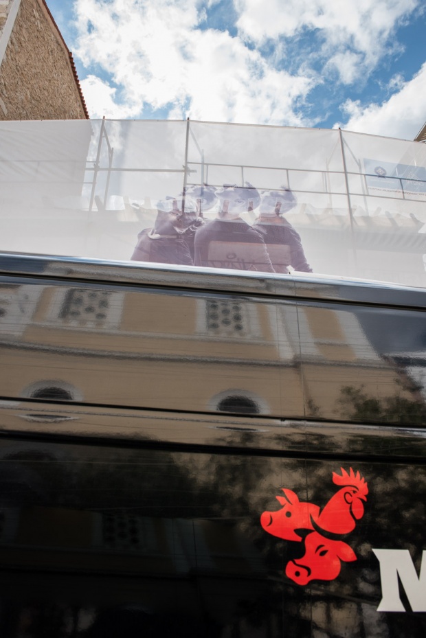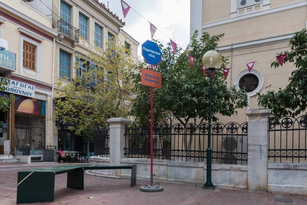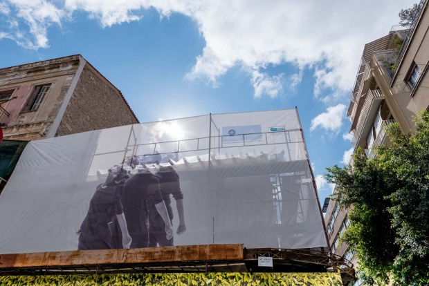 Με ένα πανό μεγάλης κλίμακας, το κτίριο της Αιόλου 38 στην πλατεία της Αγίας Ειρήνης καλύφθηκε από το πρωί της Πέμπτης, μέσω της δράσης «Αθήνα εικόνες χορού».