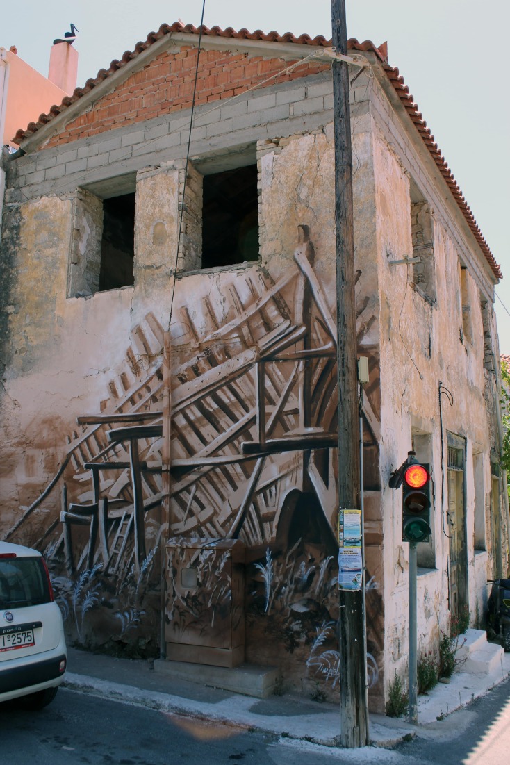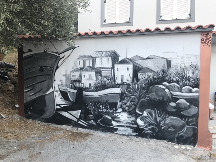 Χωρίς να γίνει κατανοητό το πέρασμα του χρόνου, τα έργα πλήθαιναν γεμίζοντας κάθε σκοτεινό στενάκι και τοίχο με ζωή. Ζωή που διαχεόταν σε όλους τους κατοίκους που άρχισαν να μας καλούν στα σπίτια τους με τιμές αρχηγών κράτους. Τα πιο μοσχομυριστά σπιτικά φαγητά, γλυκά και φρούτα μάς περίμεναν κάθε μέρα μετά από κάθε δημιουργία. Η θάλασσα, αν και δίπλα μας, δεν στάθηκε τόσο θελκτική για να αιχμαλωτίσει το ενδιαφέρον μας μακριά από τους τοίχους. Μονάχα όταν ολοκληρώθηκαν όλες οι δημιουργίες μέσα σε μιάμιση εβδομάδα κατάφερε να ξαναγεμίσει το θαλασσινό αλάτι στα πρόσωπά μας. Ηλιοκαμμένα και φωτεινά γιατί πάνω από όλα γνώρισαν καλύτερα και εμπιστεύτηκαν το ένα το άλλο.