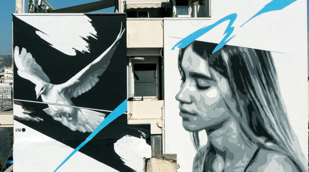 H τοιχογραφία της σεζόν είναι έτοιμη. Το νέο έργο του ΙΝΟ με τίτλο «Ελευθερία προς πώληση» ολοκληρώθηκε πριν από λίγες εβδομάδες και βρίσκεται σε πολυσύχναστο σημείο της Αθήνας ανάμεσα σε γνωστά κέντρα νυχτερινής διασκέδασης, λίγο μετά την αρχή της Ιεράς Οδού στο Γκάζι.