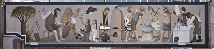 Ο Φίκος εικονογραφεί την ιστορία της Μεταλλουργίας και την Οδύσσεια σε ένα «διπλής όψεως» έργο στο WGI (Ελληνικό Ινστιτούτο Συγκολλήσεων) στην Ελευσίνα.