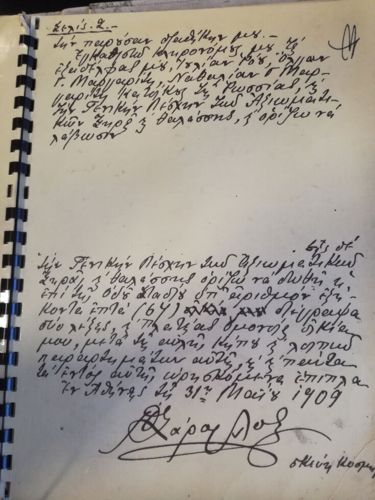 Στην ηλικία των 44 ετών συνέταξε τη, με ημερομηνία 31/05/1909, περίφημη διαθήκη του με την οποία αφήνει το μεγαλύτερο μέρος της περιουσίας του στην «Γενική Λέσχη Αξιωματικών Ξηράς και Θαλάσσης» αποδεικνύοντας έμπρακτα, για ακόμη μία φορά την αγάπη του για τον Στρατό αλλά και την πίστη του στη σημαντικότητα της «ολότητας», στην υπηρεσία της οποίας είχε θέσει εαυτόν.