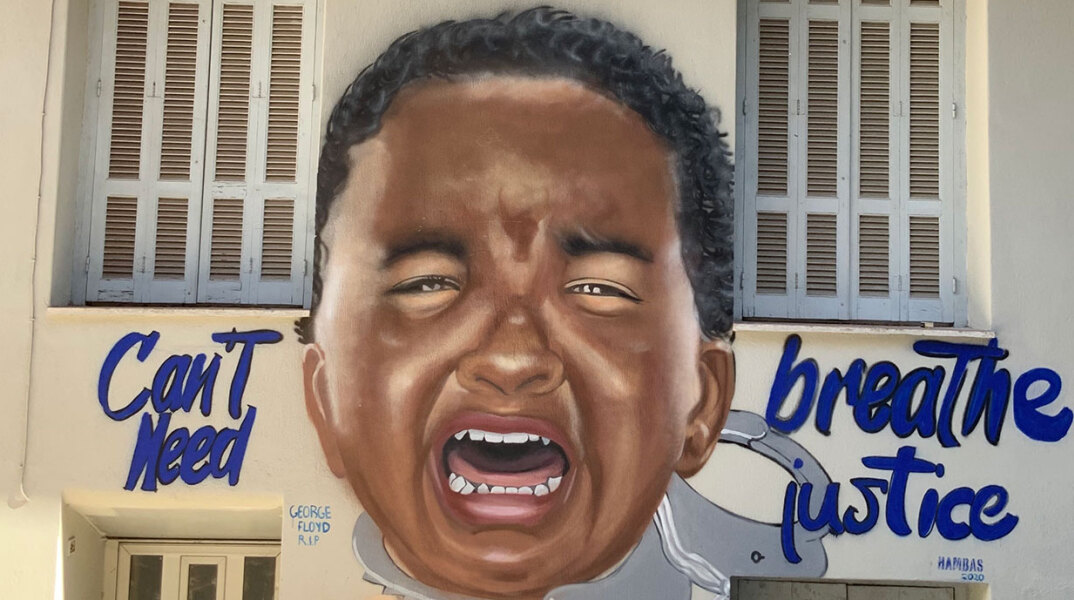 Στον τοίχο – καμβά του Hambas ένα παιδί πνίγεται από τις περασμένες στον λαιμό του χειροπέδες και αυτό που χρειάζεται είναι «δικαιοσύνη». Ο καλλιτέχνης εξηγεί στην AV πώς και πόσο τον επηρέασε ο φρικτός θάνατος του Τζορτζ Φλόιντ αλλά και το μήνυμα που θα θέλει να περάσει στην ελληνική κοινωνία με το νέο του έργο. «Έχω ζωγραφίσει ξανά παιδιά διαφορετικής φυλής, όπως παιδιά της Αφρικής, παιδιά της Νότιας Αμερικής. Τα έχω ζωγραφίσει σε σχολεία, αλλά και στο Χαμόγελο του Παιδιού όπου ζουν πολλά Ελληνοαφρικανάκια προσπαθώντας να περάσω το μήνυμα της ισότητας κάθε φυλής. Η περίπτωση του Τζορτζ Φλόιντ με συγκίνησε ιδιαίτερα και σκέφτηκα ότι επιτέλους κάτι πρέπει να κάνουμε γι’ αυτή τουλάχιστον εδώ στην Ελλάδα που προλαβαίνουμε να περάσουμε ένα μήνυμα λόγω και των μεταναστευτικών θεμάτων . Δυστυχώς στις ΗΠΑ, ακόμη και μετά από έναν Αφροαμερικανό πρόεδρο (σ.σ. Μπαράκ Ομπάμα) εξακολουθεί να υπάρχει ρατσισμός σε βάρος της αφροαμερικανικής κοινότητας. Ένας ρατσισμός που έχει διαμορφώσει την κουλτούρα της Αμερικής Μέσα στην άσχημη αυτήν περίοδο με τον κορωνοϊό ίσως μάθουμε να θεωρούμε ίσους όλους τους ανθρώπους και να τους δώσουμε ίδια δικαιώματα».
