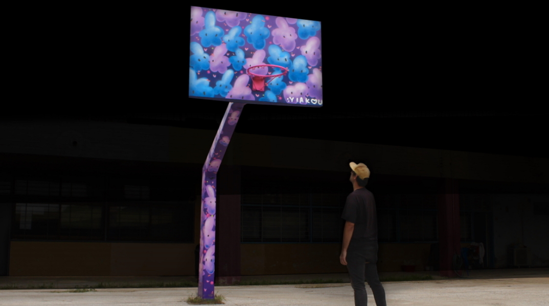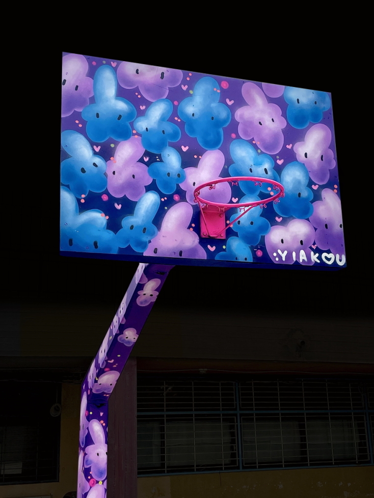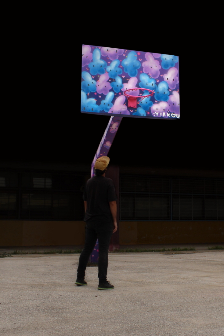 Όταν οι συνθήκες είναι ιδανικές, κάτι που φαίνεται δεν θα αργήσει αυτή η στιγμή, η έκθεση θα παρουσιαστεί για όλους, μαθητές και επισκέπτες, και θα περιλαμβάνει περισσότερα από 100 street art έργα και μία σειρά από δράσεις. Για την ώρα, παίρνουμε μία μικρή πρόγευση από μία μπασκέτα στο κέντρο του σχολικού συγκροτήματος, βαμμένη στα όνειρα και στα χρώματα του Yiakou.