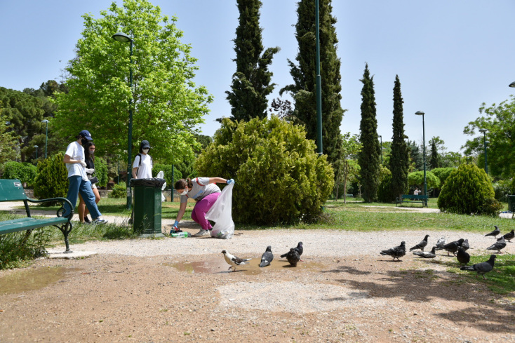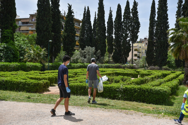 Δράση ανακύκλωσης από τον δήμο Αθηναίων με εθελοντές από το «Χαμόγελο του Παιδιού» στο Άλσος Προμπονά.