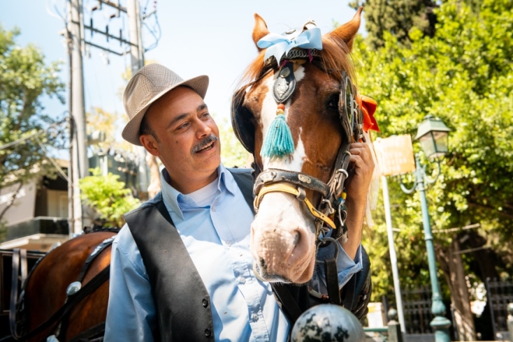 «Από 17 χρονών ασχολούμαι με αυτό το επάγγελμα, χειμώνα-καλοκαίρι. Πιάνω στις 12 το πρωί και φεύγω στις 9.00. Μπορεί να κάνω ως 7 δρομολόγια τη μέρα, μπορεί και κανένα. Στα 17 μου επίσης έπαιξα στη σειρά Εύθυμη Χήρα με την Αλίκη Βουγιουκλάκη. Ο ηθοποιός δεν μπορούσε να χειριστεί το άλογο και την άμαξα και φώναξαν εμένα στο στούντιο να κάνουμε γύρισμα. Από μεράκι κρατάω το παλιό ντύσιμο του αμαξά και προσπαθώ να μεταφέρω σε όλους την αγάπη μου για την δουλειά αυτή. Έχω δύο κόρες, η μικρή μου λέει «Μπαμπά θα γίνω αμαξάς». Πέρα από το άλογο που είναι ο καλύτερός μου φίλος, η καθημερινή επαφή με τον κόσμο, τα χαμόγελα των παιδιών, είναι αυτά που μου φτιάχνουν τη μέρα. Μας καλούν σε πάρτι γενεθλίων, σε παιδότοπους. »