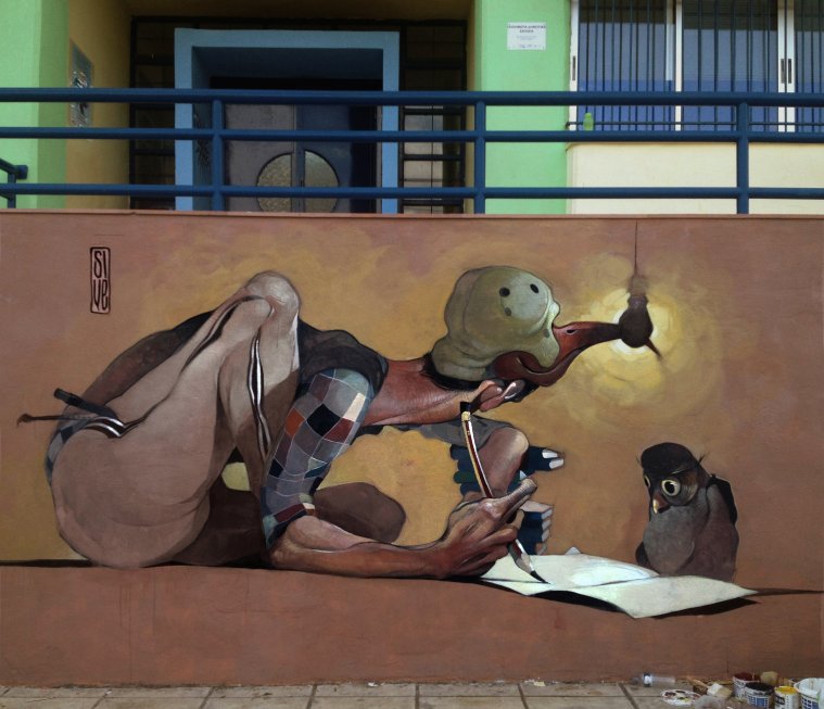 Η τέχνη του δρόμου κατά την άποψή σου οφείλει να θίγει κοινωνικά και πολιτικά ζητήματα; Κατά τη γνώμη μου, ναι, ή τουλάχιστον τις περισσότερες φορές. Χρειάζονται εικόνες που θα συναντήσει ο καθένας ξαφνικά μπροστά του και θα έχουν να πουν κάτι περισσότερο και πιο αληθινό από τον εγκλωβισμό και το καλούπωμα της τηλεόρασης. Γενικά όμως, δεν μπορώ να μιλήσω για άλλους καλλιτέχνες του δρόμου. Ο κάθε καλλιτέχνης βγάζει το δικό του κομμάτι στον δρόμο, χωρίς να οφείλει τίποτα και σε κανέναν. Είναι μια σύγχρονη μορφή τέχνης που, όπως και σε όλες τις άλλες, τα πάντα είναι ανοιχτά.