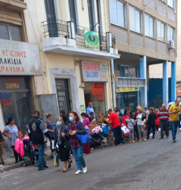 Η Αθηνά Σοκόλη γυρίζει πίσω τον χρόνο για να πιάσει το νήμα που μας φέρνει στο παρόν. Αναφέρεται στην πορεία της περιοχής, στις τεχνοτροπίες των κτιρίων και πώς η μέθοδος της αντιπαροχής άλλαξε καταλυτικά την εικόνα της πόλης. Την ακούω, ενώ ταυτόχρονα παρατηρώ τα βλέμματα προς εμάς – κάποια αδιάφορα, άλλα λίγο καχύποπτα, άλλα παραξενεμένα, σαν να αντικρίζουν δύο φιγούρες από ένα διαφορετικό σύμπαν.
