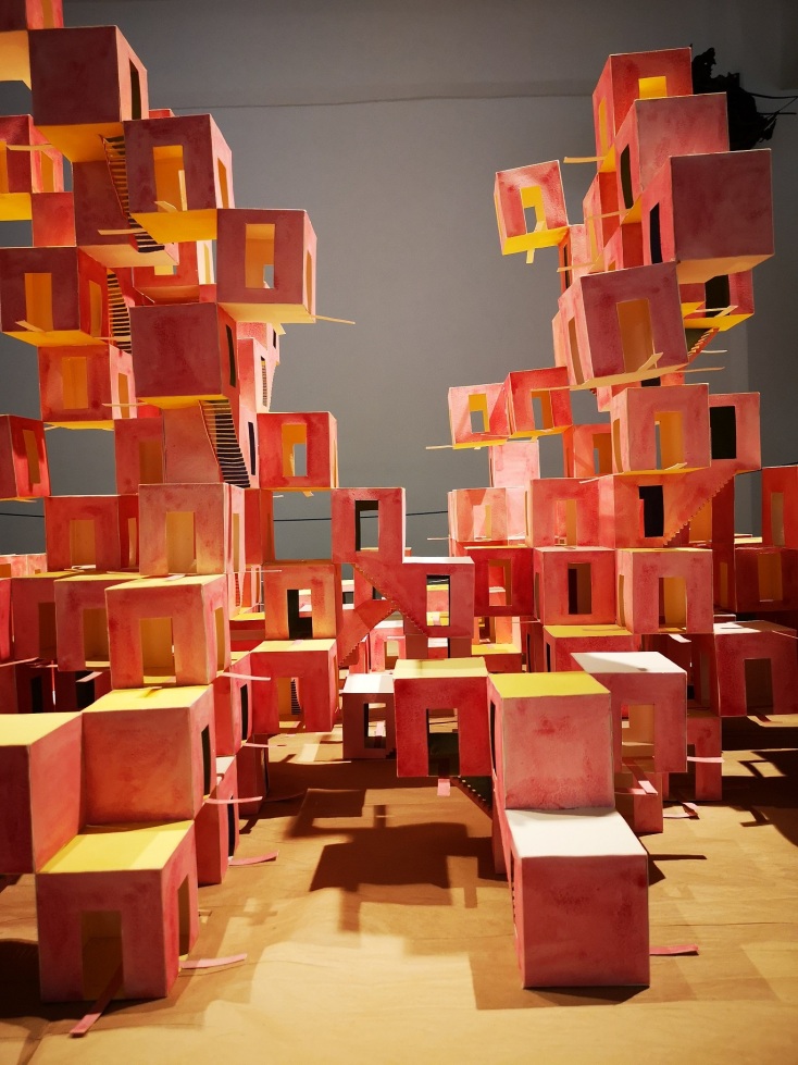 Στη διπλανή αίθουσα ένα από τα πιο «συμβαίνει τώρα» εκθέματα σύγχρονης τέχνης που μπορείς να συναντήσεις στην Ελλάδα, η υφασμάτινη αρχιτεκτονική εγκατάσταση “348 West 22nd St. Apt.” του βιωματικού Νοτιοκορεάτη καλλιτέχνη Do Ho Suh μεταφέρει τον επισκέπτη με μοναδικό, παστέλ τρόπο σε ένα τυπικό νεοϋορκέζικο διαμέρισμα στο Chelsea, από ημιδιαφανή πολυεστέρα, κλίμακας 1:1 και αξεπέραστης λεπτομέρειας.