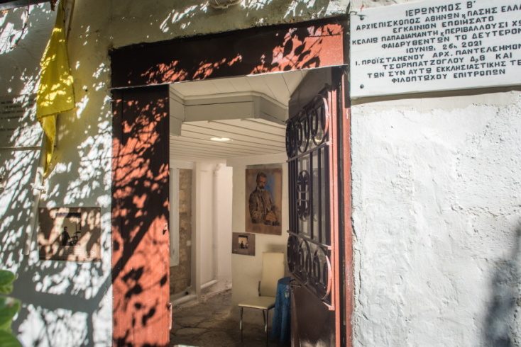 Δώσαμε ραντεβού μια μέρα νωρίς το μεσημέρι έξω από τον βυζαντινό ναό των Αγίων Αναργύρων, ο οποίος χτίστηκε τον 11ο αιώνα και ανακαινίστηκε το 1651 από τον ιερέα Δημήτριο Κολοκύνθη. «Αν φτάσεις νωρίτερα, ζήτησε από τη νεωκόρο να σου δείξει το κελί όπου έζησε ο Παπαδιαμάντης», μου είχε πει στο τηλέφωνο η ξεναγός και αθηναιογράφος Άρτεμις Σκουμπουρδή. Μπαίνοντας στον ναό, στα αριστερά υπάρχει μια πόρτα που οδηγεί σε μια αυλή που μυρίζει βασιλικό. Εκεί, στο τέρμα της αυλής, σε μια κάμαρα ούτε 10 τετραγωνικά μέτρα, με ένα ακόμα πιο μικρό πατάρι όπου είχε το κρεβάτι του, πέρασε κάμποσα από τα χρόνια της ζωής του ο Σκιαθίτης εθνικός μας συγγραφέας. Να θυμάστε ότι ο ναός είναι ανοιχτός καθημερινά έως τις 2 το μεσημέρι και πως η νεωκόρος, η ευγενέστατη κυρία Χρυσούλα, είναι πάντα πρόθυμη να δείξει στον περαστικό το κελί όπου θρυλείται ότι έζησε ο Παπαδιαμάντης. Η ίδια αυτή αυλή, αναφέρει η συγγραφέας, υπήρξε το κοιμητήρι αγωνιστών που σκοτώθηκαν στις μάχες της Αθήνας στην Επανάσταση του 1821, πολλοί από τους οποίους ήταν Ψυρριώτες. Έμειναν εκεί μέχρι το 1837, όταν τα οστά τους μεταφέρθηκαν στο Πρώτο Νεκροταφείο. «Τι κρίμα», σημειώνει η Άρτεμις Σκουμπουρδή, «να μην έχει μεριμνήσει κανείς να υπάρξει μια μικρή επιγραφή που να γράφει ότι εδώ ήταν το κοιμητήρι των ηρώων».