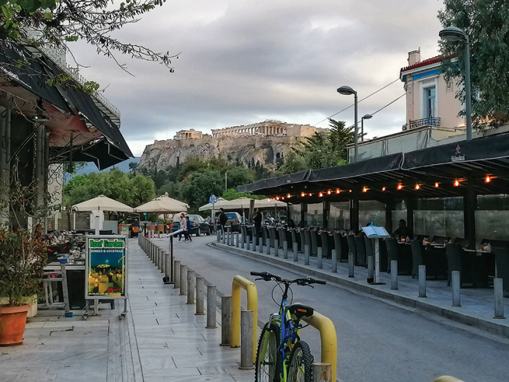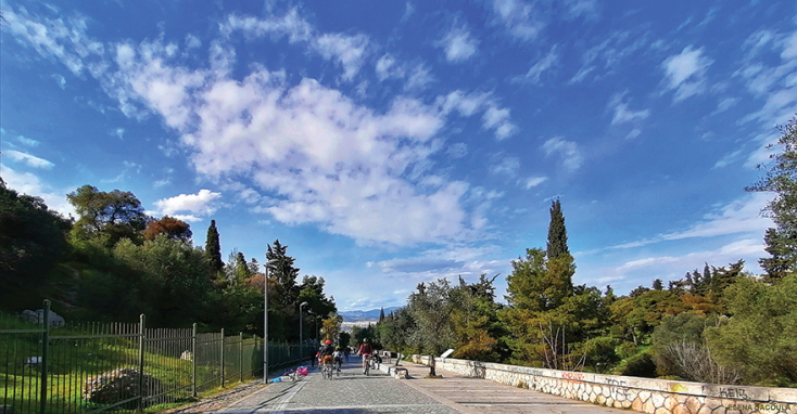 Αφήνοντας πίσω μας το Γκάζι και περνώντας απέναντι στην οδό Πειραιώς, κατευθυνόμενοι προς το Σύνταγμα, έχουμε την ευκαιρία να περπατήσουμε σ’ έναν ακόμη υπέροχο πεζόδρομο της πόλης, με το νεκροταφείο του Κεραμεικού στο αριστερό μας χέρι, την Ακρόπολη στο δεξί και τον λόφο του Λυκαβηττού μπροστά μας. Μία υπέροχη βόλτα, ειδικά την ώρα του δειλινού, που το γλυκό φως τονίζει ακόμη περισσότερο την ομορφιά όλων αυτών των μνημείων.