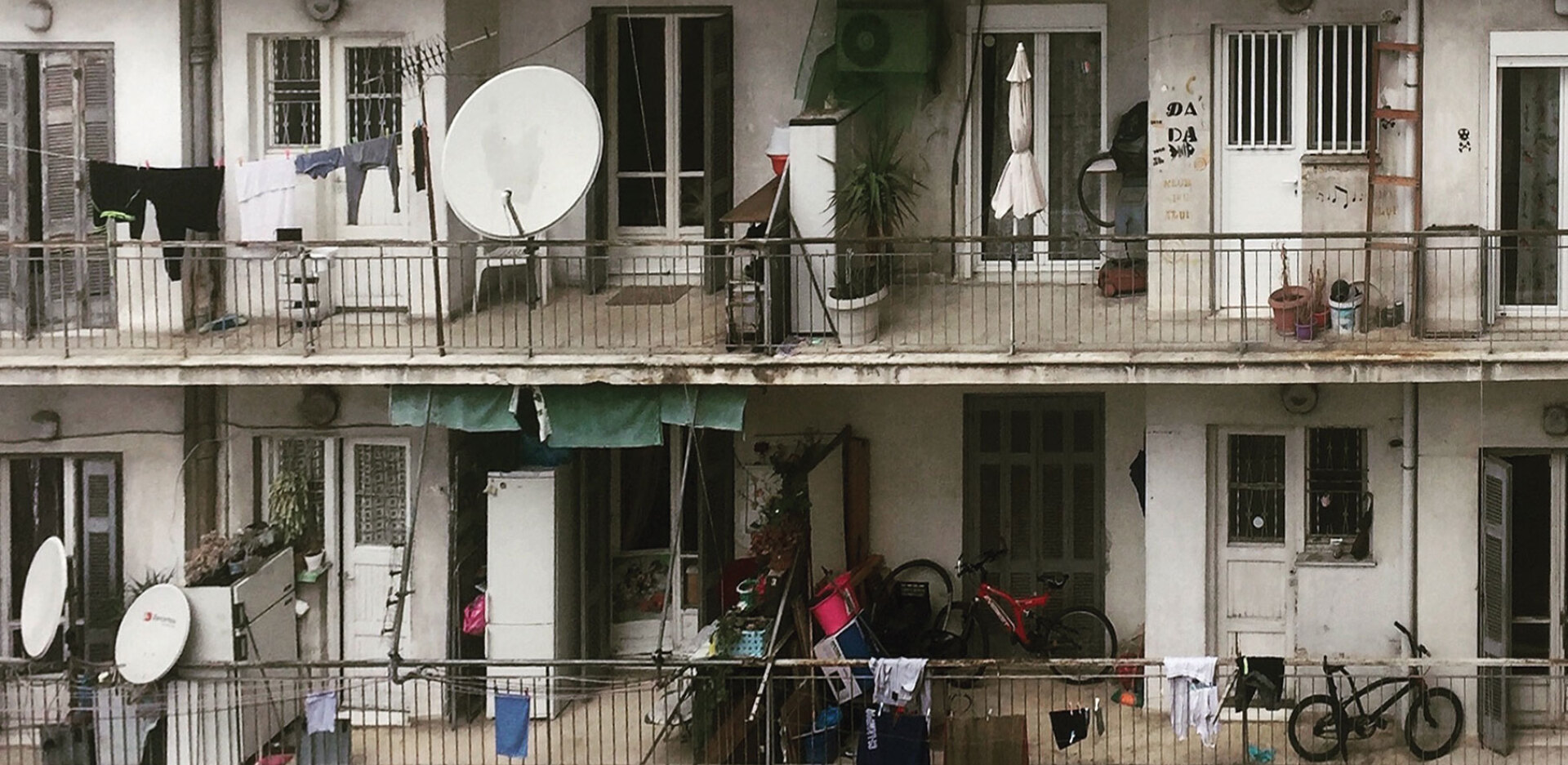 Αθήνα τον Αύγουστο είναι ένα τουριστικό, θεατρικό σκηνικό. Πίσω από τα κλισέ της καλοκαιρινής της παράστασης, υπάρχει ένα παρασκήνιο που δημιουργεί τις δικές του ιστορίες. Όλες με την αυθεντικότητα της ζωής που συμβαίνει πίσω από τις κουρτίνες: Οι ακάλυπτοι. Παστρικά βαλμένα ντουλάπια σε μπαλκόνια, σφουγγαρίστρες σαν ηρωίδες δράματος, φυλαγμένα ποδήλατα τυλιγμένα με λάστιχα ποτίσματος. Τρυφερές προσπάθειες δημιουργίας patio, μια ομπρέλα, δυο σεζ λονγκ, τραπεζάκι, καθαρά ποτισμένα πλακάκια να δροσίσουν, φυτά που ζουν για λίγο φως. Γκρεμίδια και καδραρίσματα σουρεαλιστικού Bauhaus. Είναι σαν να ακούς φωνές και μουσικές από διαφορετικές στιγμές, η πόλη σαν να δείχνει στους κατοίκους της τα σωθικά της – στριφογυριστές σκάλες, εξαερισμοί, κλιματιστικά και κιονόκρανα. Ανάμεσα σε ήχους, μυρωδιές, μεσημεριανό ύπνο σε κάμαρες, με την Ακρόπολη στο βάθος, όλα να είναι συντονισμένα στη συμφωνία του Αυγούστου.