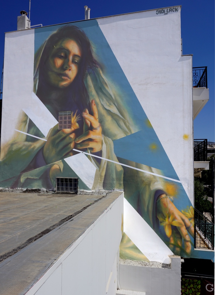 O Jack Lack, ή αλλιώς Roman de Laporte, έζησε τα τελευταία χρόνια στο Groningen της Ολλανδίας. Έμεινε στο κέντρο της Αθήνας, κάνοντας «περιστασιακά ταξίδια» στα βουνά και τους πολλούς λόφους της πόλης για να ξεφύγει από τους έντονους ρυθμούς της. Σχεδόν σε όλες τις εκδρομές του τον εξέπληξε η μυρωδιά των σπαθόχορτων του Αγίου Ιωάννη στον ζεστό αέρα. Ήταν μια τόσο έντονη και εκπληκτική μυρωδιά για εκείνον που του ξύπνησε αμέσως πολλές εικόνες. Εξερεύνησε για λίγο και την τοπική καλλιτεχνική σκηνή, πηγαίνοντας σε συναυλίες του αθηναϊκού συγκροτήματος ΑΜΚΑ που σήμερα δηλώνει φανατικός. «Το αρχικό πλάνο ήταν να απολαύσω μια διαφορετική όψη του street art, να συναντήσω μερικούς φίλους και να “μάθω” τα μονοπάτια τους. Ωστόσο, συνειδητοποίησα τις δυνατότητες της πόλης για murals και ξεκίνησα να ετοιμάζομαι για το κατάλληλο project. Άρχισα να τσεκάρω την τοπική σκηνή και να μιλάω με τοπικούς artists, οι οποίοι με έφεραν σε επαφή με την Καλλιόπη και τον Θωμά. Επικοινώνησα μαζί τους και όλα βρήκαν το δρόμο τους. Όταν τα παιδιά μου έδειξαν την τοποθεσία του mural και έχοντας δει το βουνό του Υμηττού, ήθελα να συμπεριλάβω αυτό το συναίσθημα που είχα στο έργο μου.