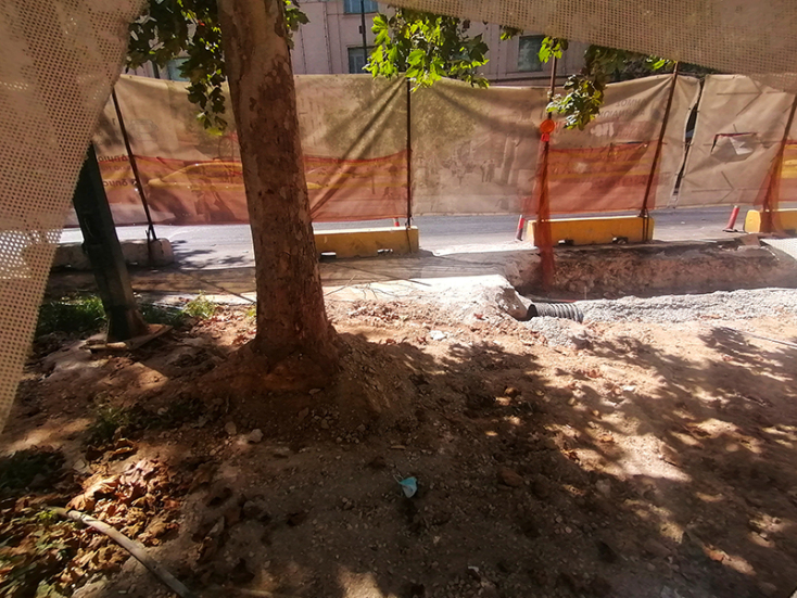 Αρνητική όμως η εικόνα μπροστά απ' αυτό, με τα έργα που έχουν αρχίσει εδώ και ενάμιση χρόνο και ακόμη… εξελίσσονται. Όσες φορές κι αν έχω περάσει από το σημείο εκείνο τους περασμένους μήνες, δεν έχω δει ούτε έναν άνθρωπο να δουλεύει. Ίσως αυτό να 'ναι τυχαίο γεγονός, αλλά η κατάσταση αυτή έχει φτάσει τους ανθρώπους που εργάζονται εκεί στα όριά τους: «Από τότε που άρχισαν τα σκαψίσματα, έχουν εμφανιστεί τρεις φορές», μου λέει η υπεύθυνη του Καφέ, η Ιωάννα Πεπελάση, και συνεχίζει, εμφανώς εκνευρισμένη: «Έχουμε ταλαιπωρηθεί αφάνταστα. Μας παίρνουν συνέχεια τηλέφωνο και μας ρωτάνε αν είμαστε κλειστά, μια και ο κόσμος βλέπει αυτά τα έργα μπροστά. Αντιμετωπίζουμε πλέον μεγάλο πρόβλημα με διαφυγόντα κέρδη. Η κατάσταση είναι απελπιστική... Τη μόνη φορά που υπήρξε άμεση αντίδραση ήταν όταν διαμαρτυρηθήκαμε για τα σκουπίδια που είχαν μαζευτεί εκεί μέσα. Ήρθαν και τα μάζεψαν αμέσως. Ο αντιδήμαρχος Καθαριότητας & Ανακύκλωσης, κος Ν. Αβραμίδης, είναι πολύ αποτελεσματικός».
