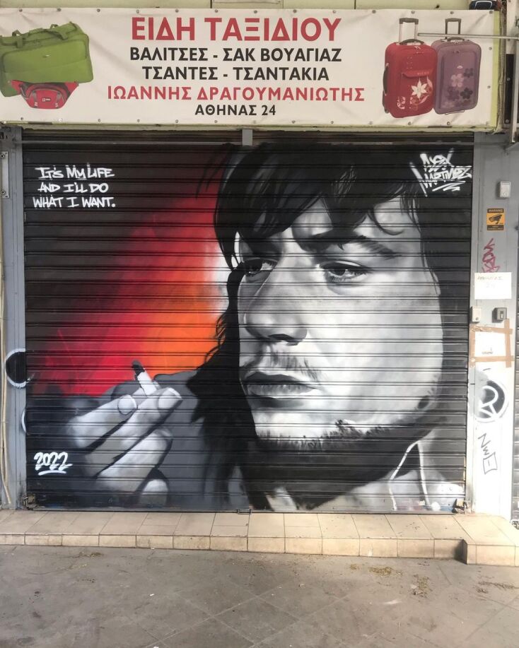 Στο Moναστηράκι, από τoν Απρίλιο του 2022 πάνω σε ρολό μαγαζιού στο Μοναστηράκι θα δεις το graffiti illustration του πασίγνωστου μουσικού Εric Βurdon, επίσης του Αlex Μartinez.