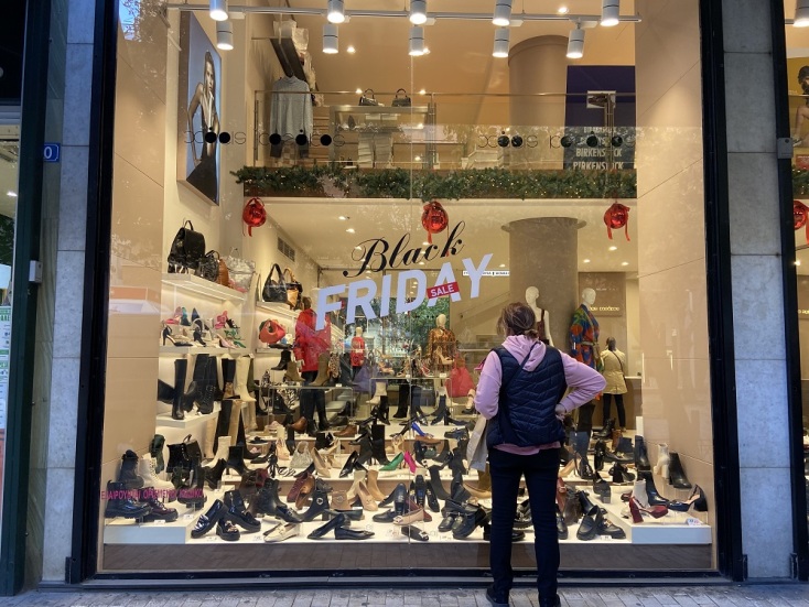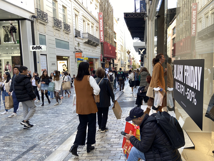 Η ώρα είναι λίγο μετά τις 2 το μεσημέρι και κατευθύνομαι προς την Ερμού. Η σημερινή μέρα για τα καταστήματα έχει ιδιαίτερη σημασία: είναι η Black Friday, ένας θεσμός που στη χώρα μας εισήχθη ουσιαστικά το 2015 και από το 2016 όλο και περισσότερα καταστήματα άρχισαν να το εφαρμόζουν. Στις Ηνωμένες Πολιτείες, από όπου και ξεκίνησε, είναι η μέρα που ακολουθεί την Ημέρα των Ευχαριστιών και σηματοδοτεί την έναρξη της περιόδου των χριστουγεννιάτικων αγορών. Η μέρα και η χαρά του καταναλωτή, με τις εκπτώσεις σε ηλεκτρονικές συσκευές να «χτυπούν» ακόμα και το 80%.
