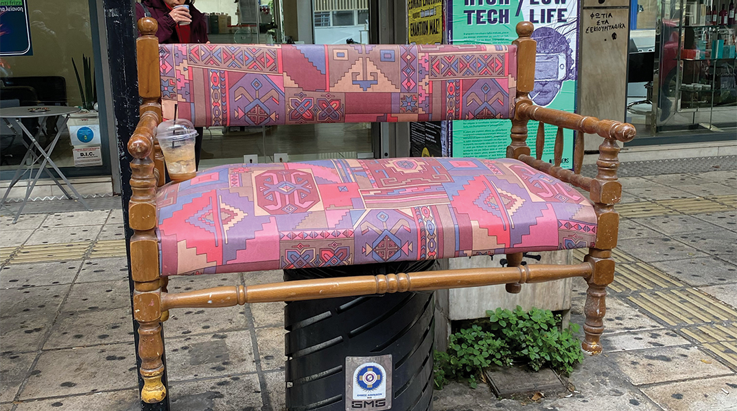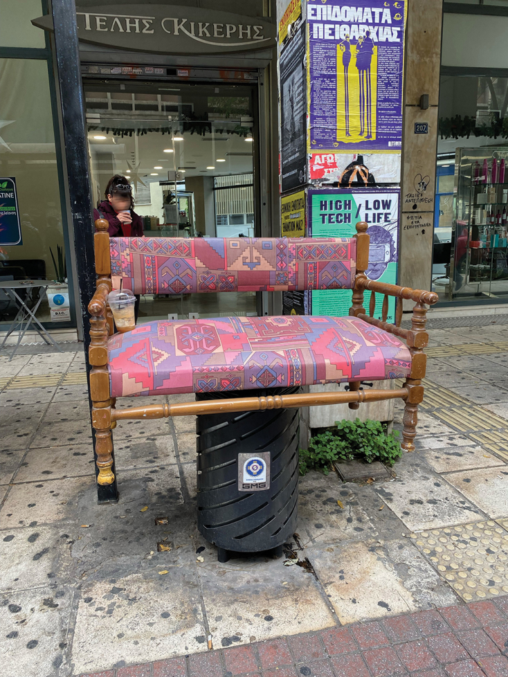 Η πιο νοικοκυρεμένη στάση λεωφορείου. Διαθέτει: Καναπεδάκι με τράιμπαλ στόφα που γίνεται και κούνια, αν καθίσουν δύο στις άκρες του. Εxtra μπόνους φρέντο καπουτσίνο για vip ταξιδιώτες (στην Ιπποκράτους)