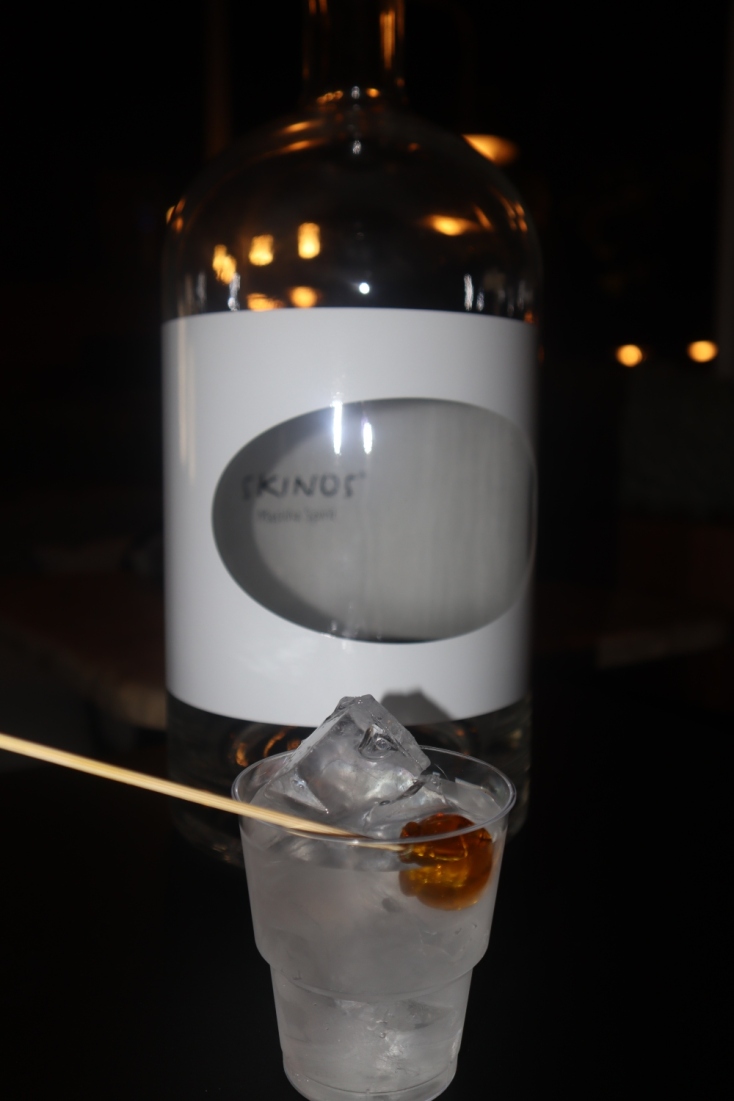 Με το που φτάσαμε στο rooftop, διασκορπιστήκαμε στις μπάρες και αρχίζαμε να χαζεύουμε τους καταλόγους με τα cocktails. Όλα είχαν σα βάση τη μαστίχα (as greek as it gets) και για να είμαι ειλικρινής δύσκολα αποφάσιζες ποιο να πάρεις. «Αλλά γιατί να περιοριστώ στο ένα;», σκέφτηκα και το έκανα πράξη. Ξεκίνησα με ένα spicy Mexican Martinez με Skinos Mastiha Spirit, κίτρο και βερμούτ. Το καλύτερο ήταν το chilly lollipop που συνόδευε το ποτό μου– δηλαδή όχι μόνο είχαν φροντίσει για τα spirits, αλλά και τα mixers ήταν επίσης δυνατά.