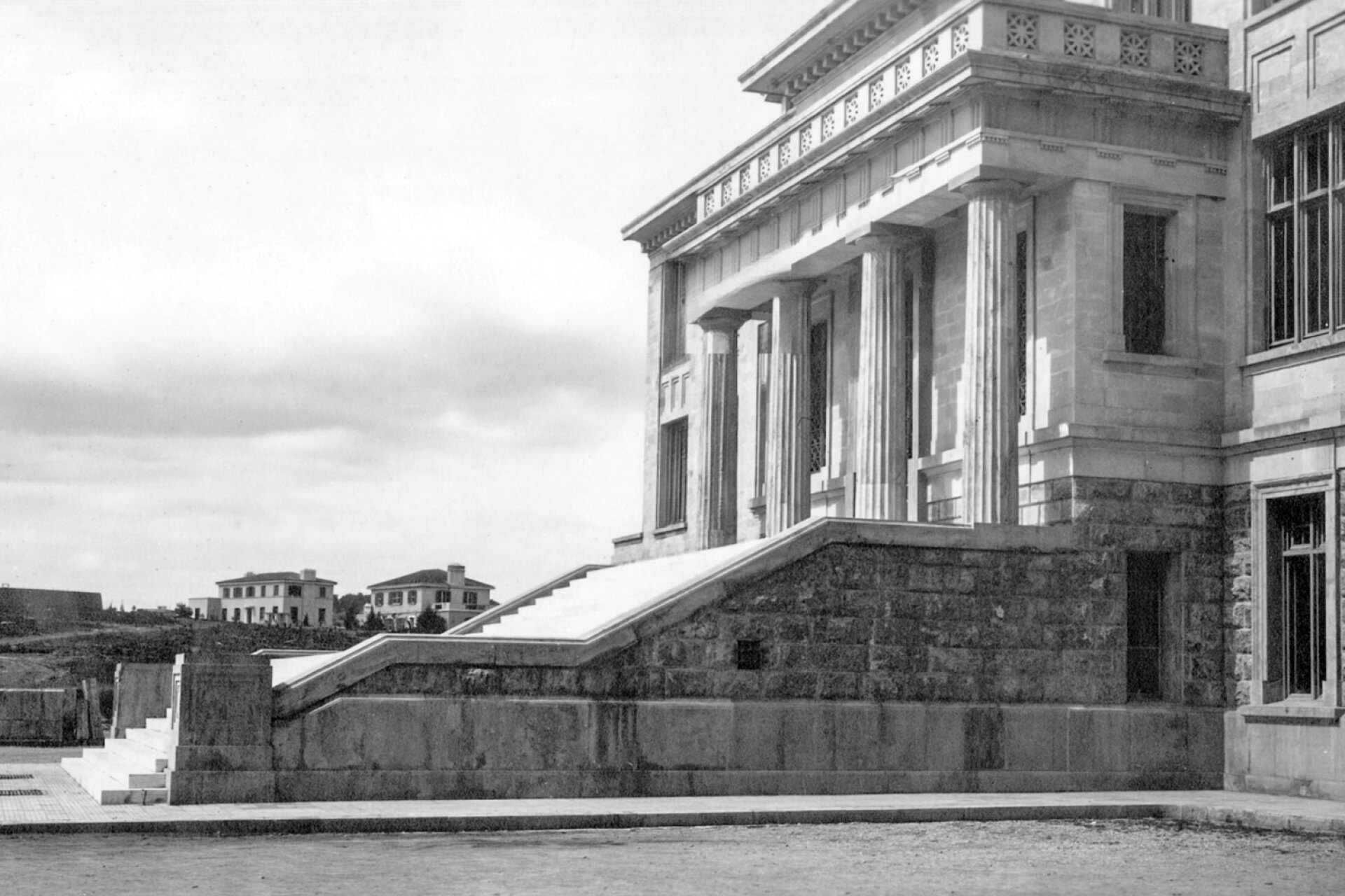 Τα σχέδια ανέλαβαν τρεις αρχιτέκτονες: ο Κ. Κυριακίδης, ο Κ. Σγούτας και ο Γ. Σούλης. Λόγω έλλειψης χρημάτων, αποφασίστηκε να κατασκευαστεί μόνο η ανατολική πτέρυγα του κτιρίου και χρειάστηκε να περάσουν 23 χρόνια μέχρι να κτιστεί και η δυτική.