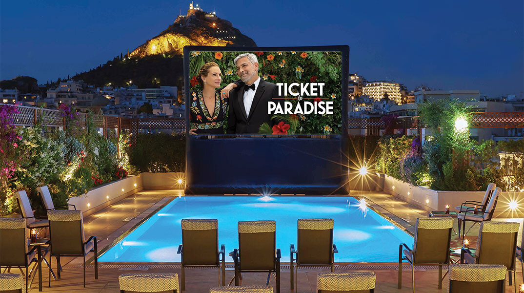 Κάθε Πέμπτη έως και Σάββατο, η εντυπωσιακή πισίνα του ιστορικού ξενοδοχείου μεταμορφώνεται σε έναν θερινό κινηματογράφο με θέα τον φωτισμένο Λυκαβηττό, προσκαλώντας τους σινεφίλ να απολαύσουν αξέχαστες προβολές. Το Pool Your Cinema άνοιξε την αυλαία με την κομεντί «Ticket to Paradise», με τους Julia Roberts και George Clooney σε ένα ταξίδι γεμάτο χιούμορ και ανάλαφρη διάθεση. Ακολουθεί το εκρηκτικό «The Fall Guy», με τον Ryan Gosling σε ρόλο κασκαντέρ, η πολυβραβευμένη ιταλική ταινία «There’s Still Tomorrow» και το πολυαναμενόμενο «Kinds of Kindness» του Γιώργου Λάνθιμου, μια τολμηρή κινηματογραφική πρόταση.