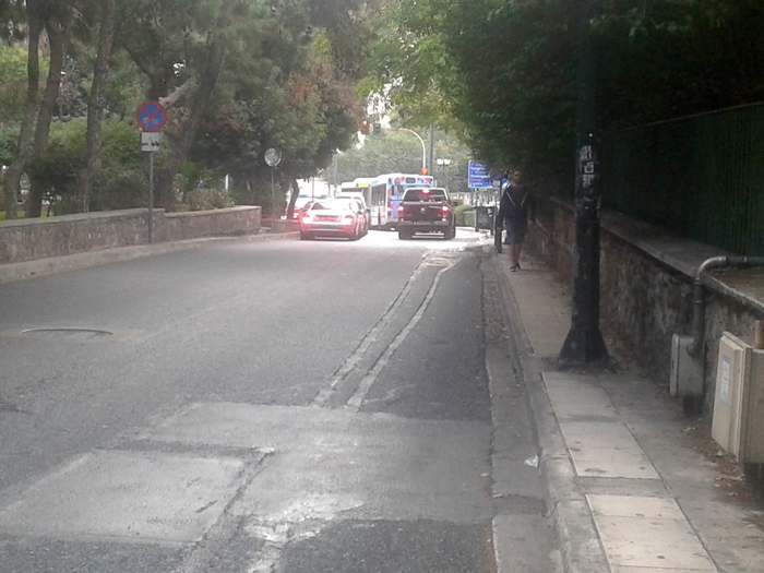 Το πεζοδρόμιο της Αλεξάνδρας πριν τη Ζαχάρωφ έχει ένα επαρκές πλάτος, μόλις όμως φτάσεις στη Ζαχάρωφ και διασταυρωθείς με άλλο πεζό, τότε ο ένας από τους δυο θα πρέπει να κατέβει στο οδόστρωμα, αφού το πέρασμα για τους πεζούς είναι μόλις 20cm. Αν τώρα σκεφτούμε ότι τα αυτοκίνητα περνούν από κει με μεγάλη ταχύτητα, είναι πραγματικά θαύμα δεν θρηνούμε θύματα καθημερινά.