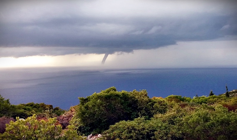 Λίγα λεπτά μετά τις 18:30, στο θαλάσσιο χώρο βορειοδυτικά του νησιού, έκανε την εμφάνισή του υδροστρόβιλος, χαρίζοντας ένα σπάνιο θέαμα στους κατοίκους της περιοχής.